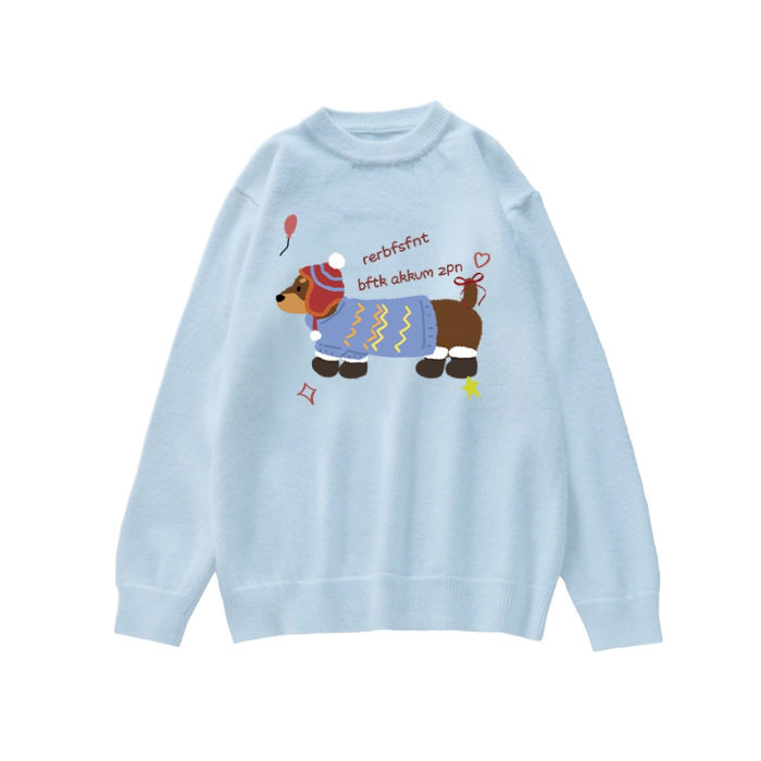 奶fufu慵懒风浅蓝色圆领毛衣女2025秋季新款oversize软糯针织衫潮