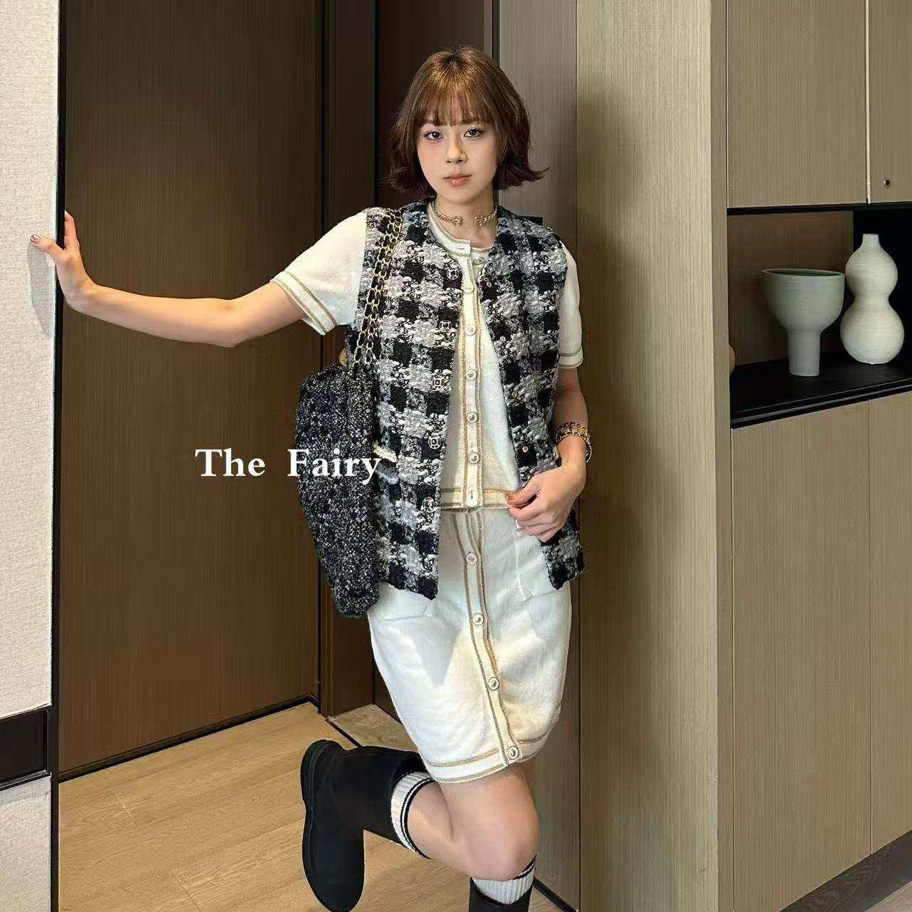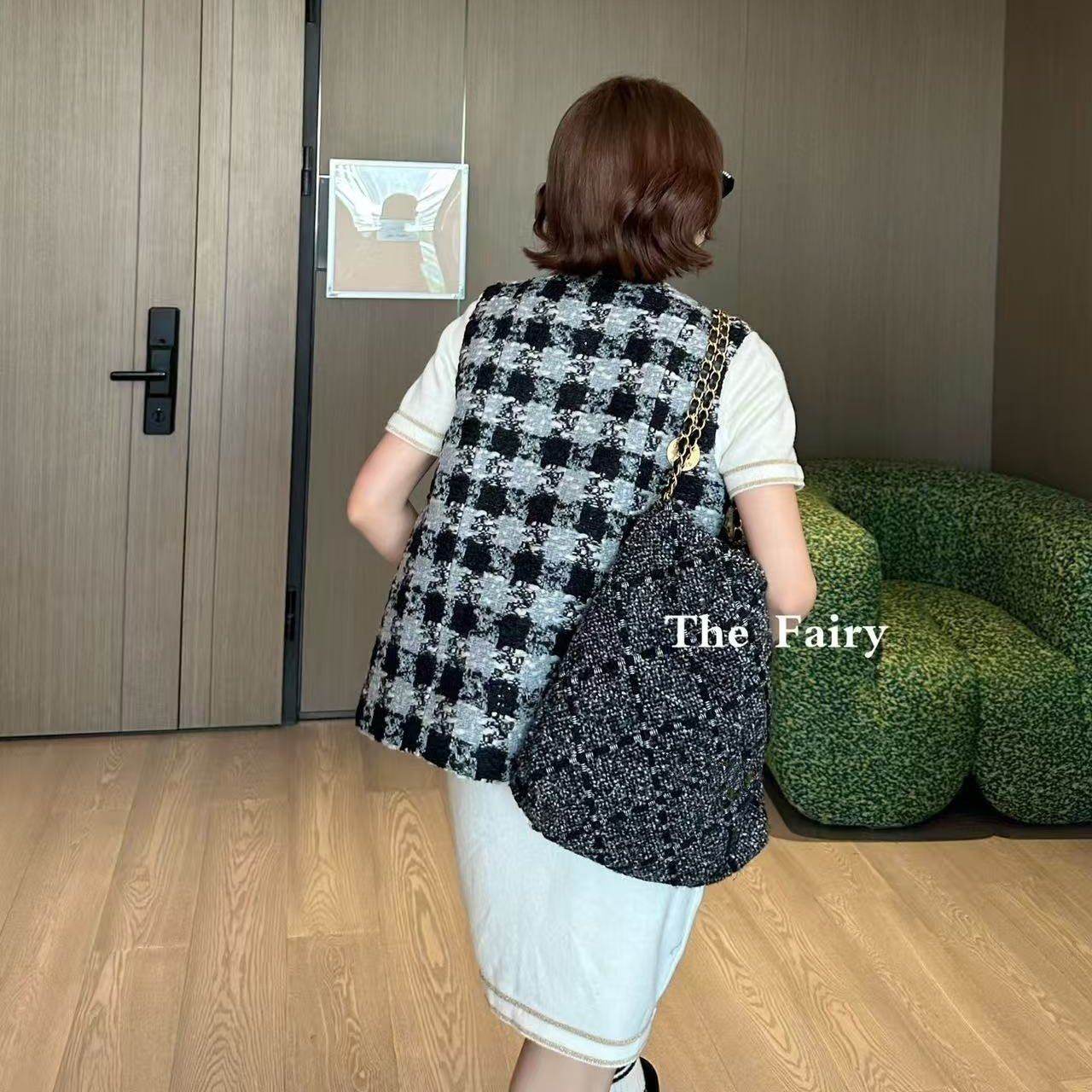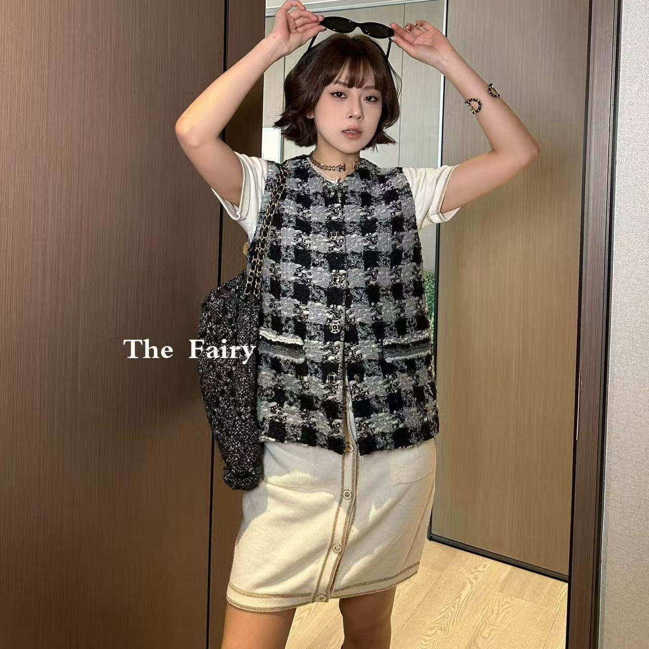 好漂亮好漂亮千鸟格黑白拼色粗花呢小香风马甲外套女2025年冬季潮