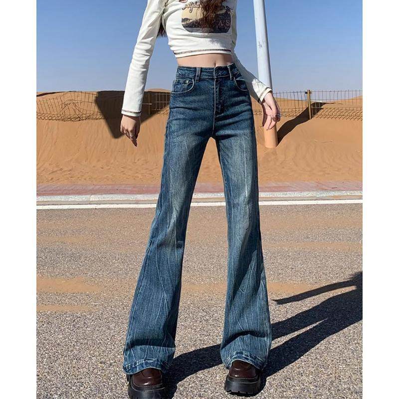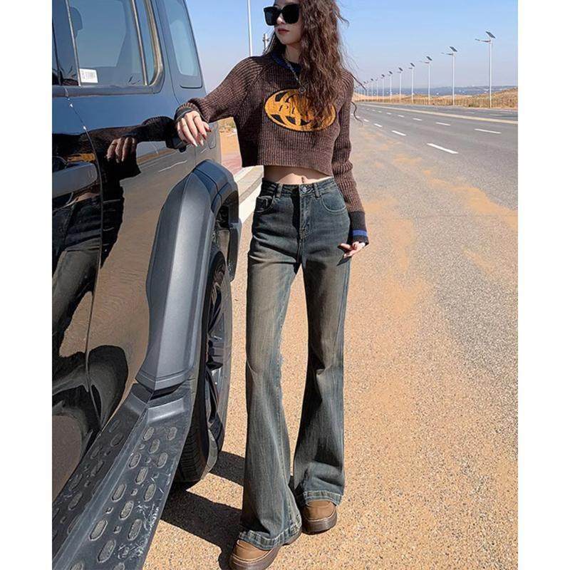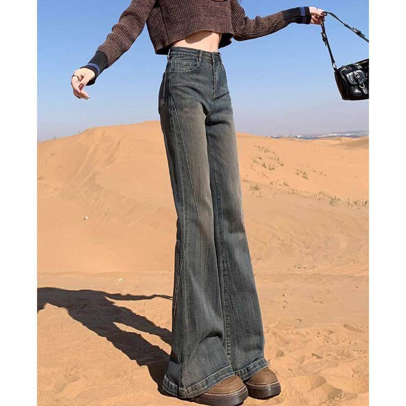 首页> 女装> 水泥灰微喇牛仔裤女2025春季新款复古高腰提臀弹力显瘦马蹄喇叭裤