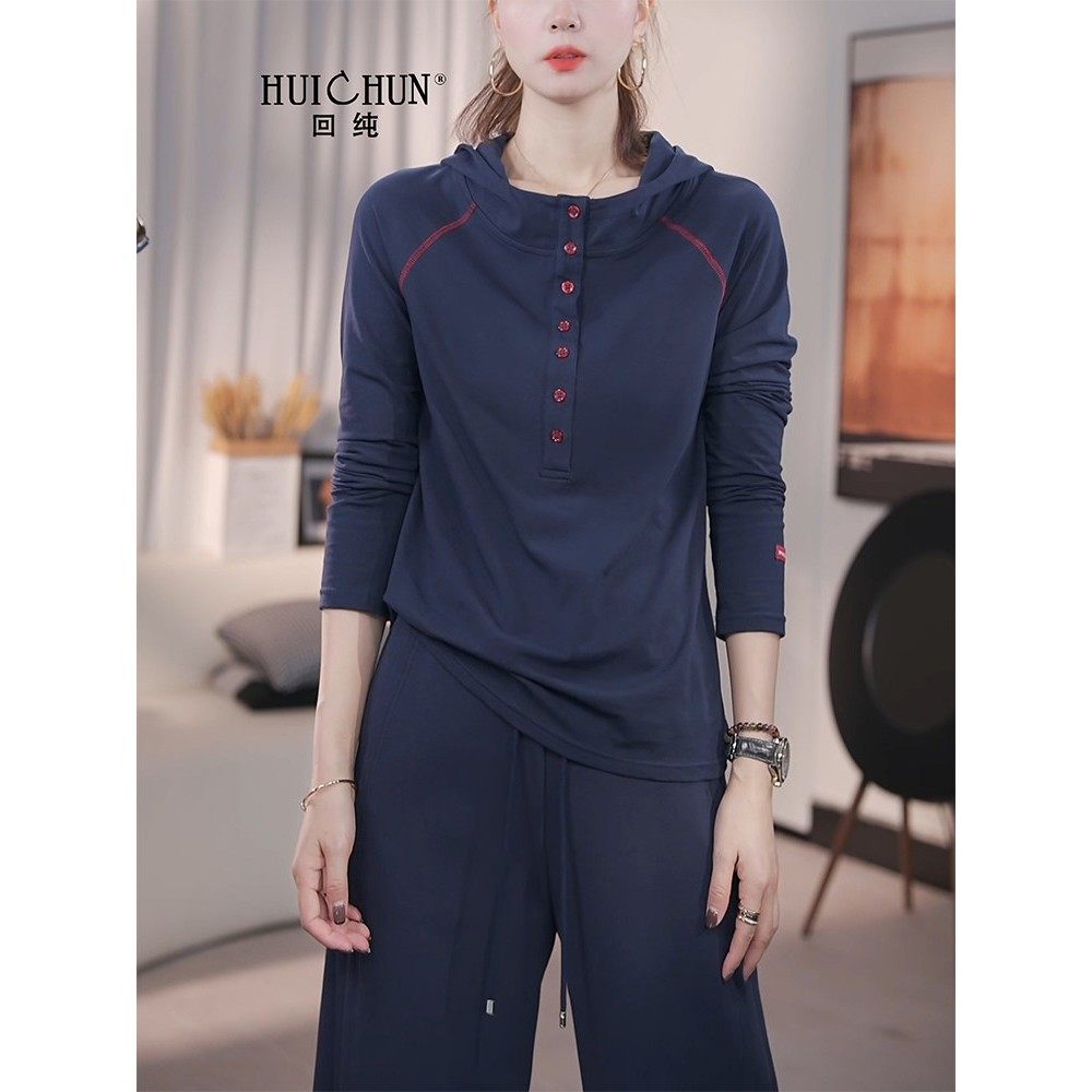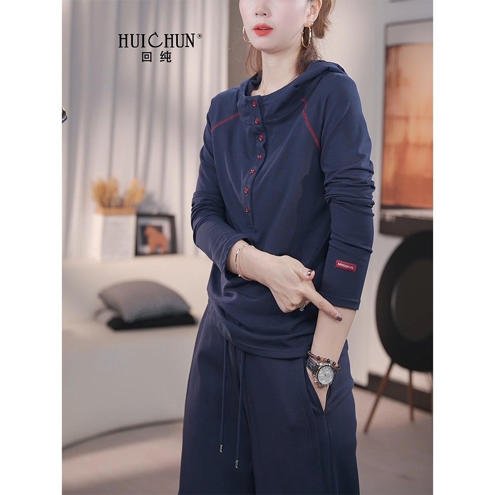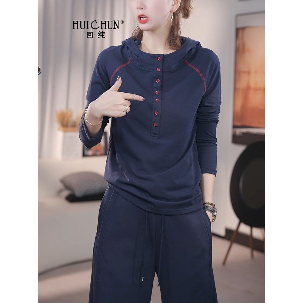 全新帽扣半开领长袖上衣胖毫米上等纯棉对比刺绣外运动衫