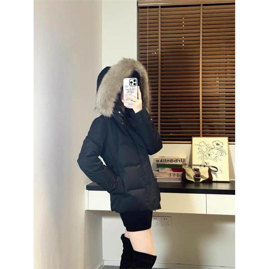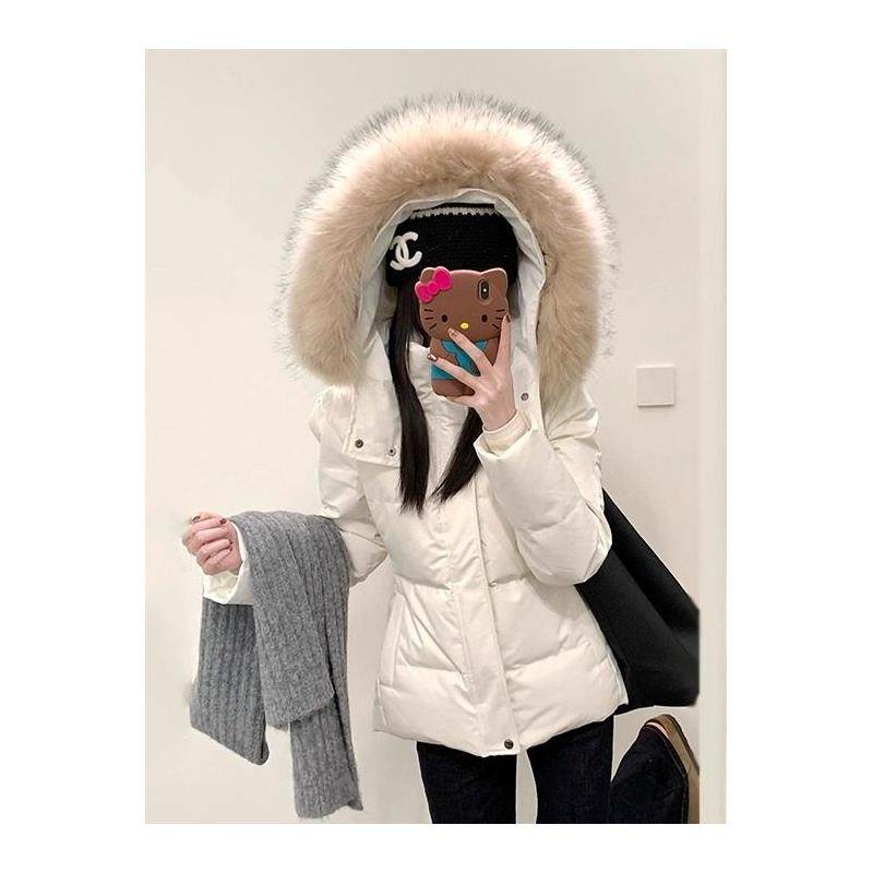 收腰羽绒服女2025年新款短款大毛领修身小个子白鸭绒加厚冬季外套