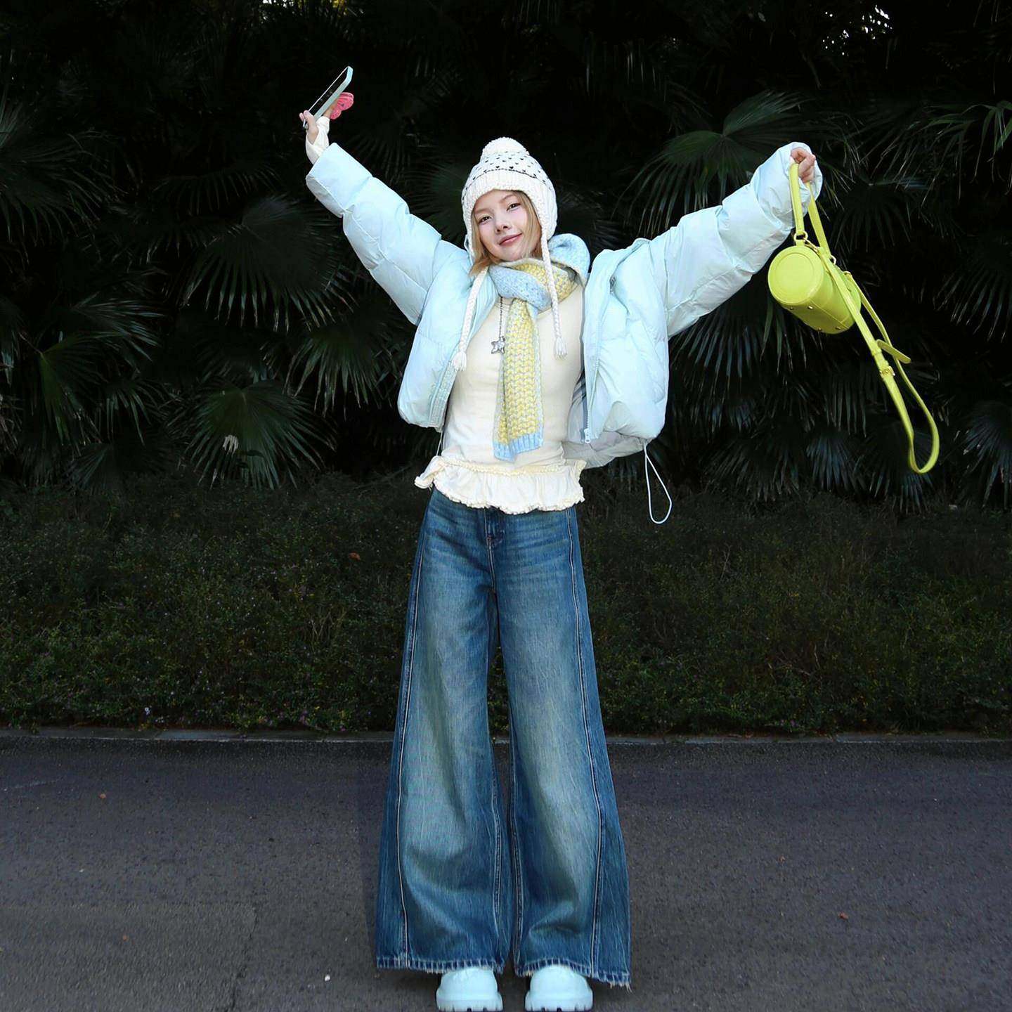 蓝色短款棉服女冬季小个子2025新款加厚保暖独特超好看棉衣外套女