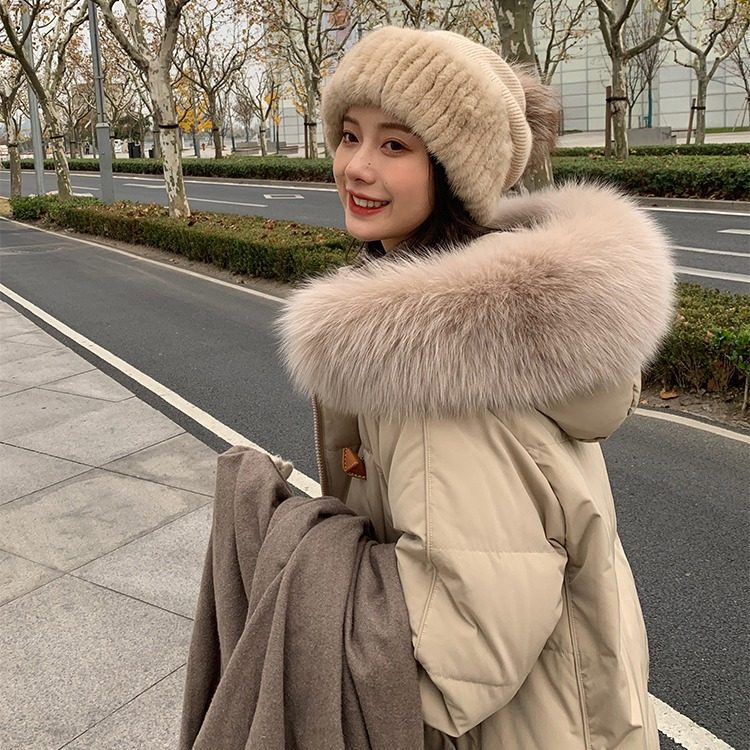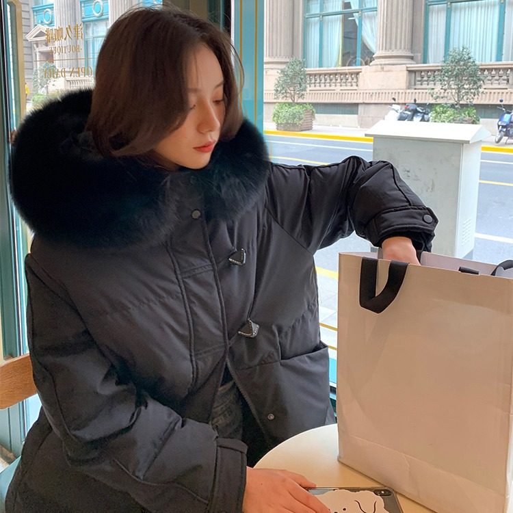 韩版大毛领羽绒服女装中长款冬季新款过膝棉服外套oversize棉衣潮