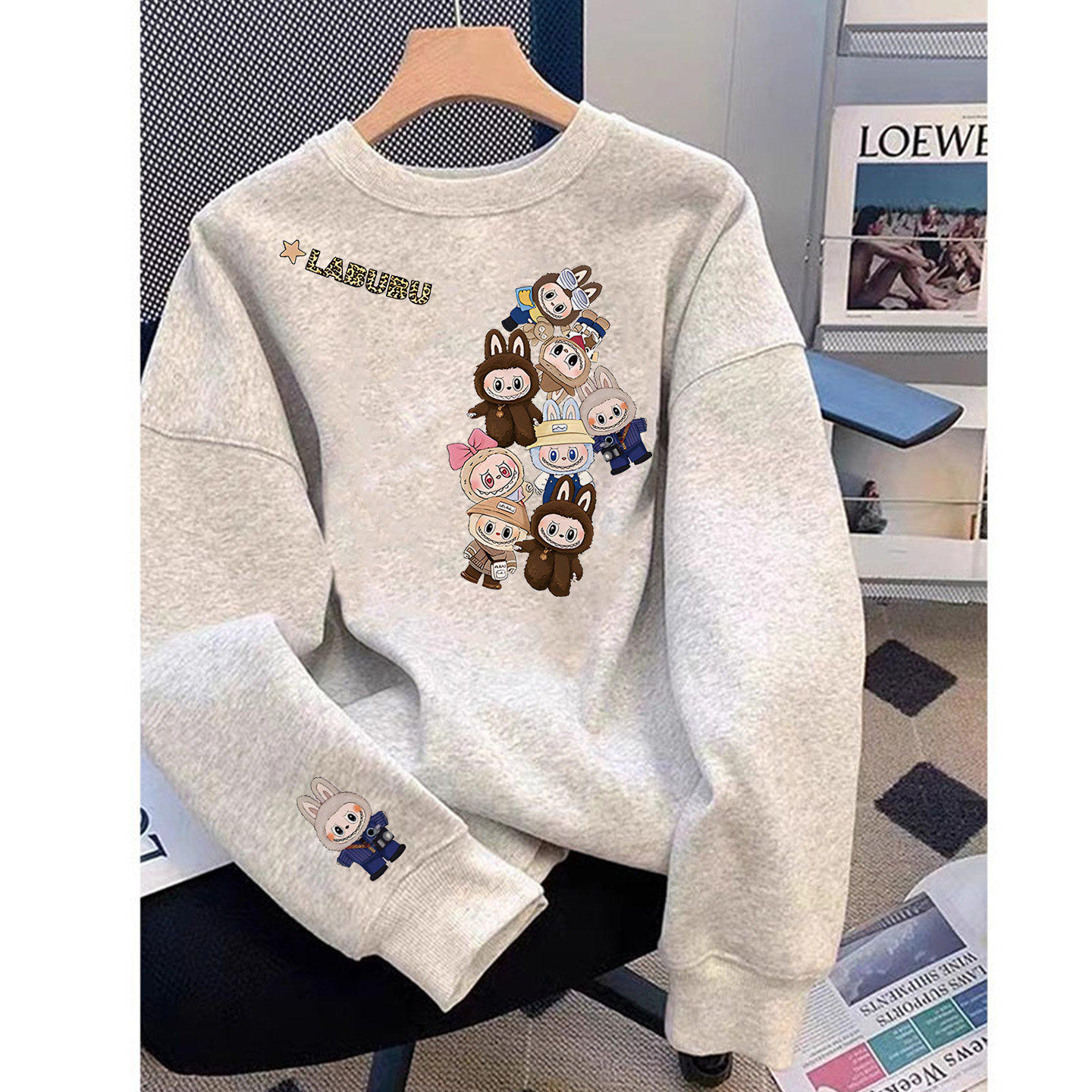 2025秋冬季新款灰色加绒加厚卫衣女宽松百搭卡通印花爆款上衣外套