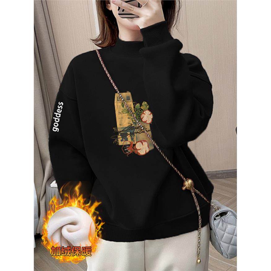 半高领卫衣女纯棉秋冬加绒加厚爆款宽松减龄洋气上衣厚款保暖外套