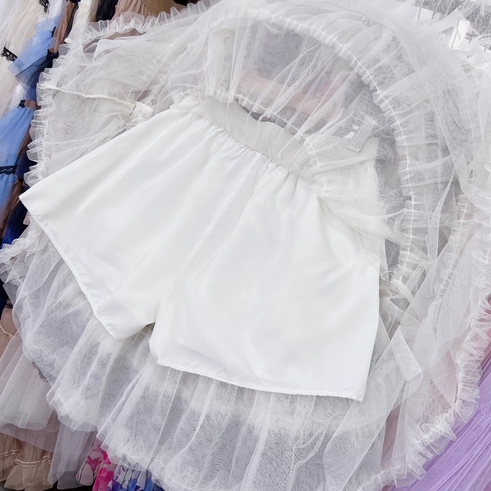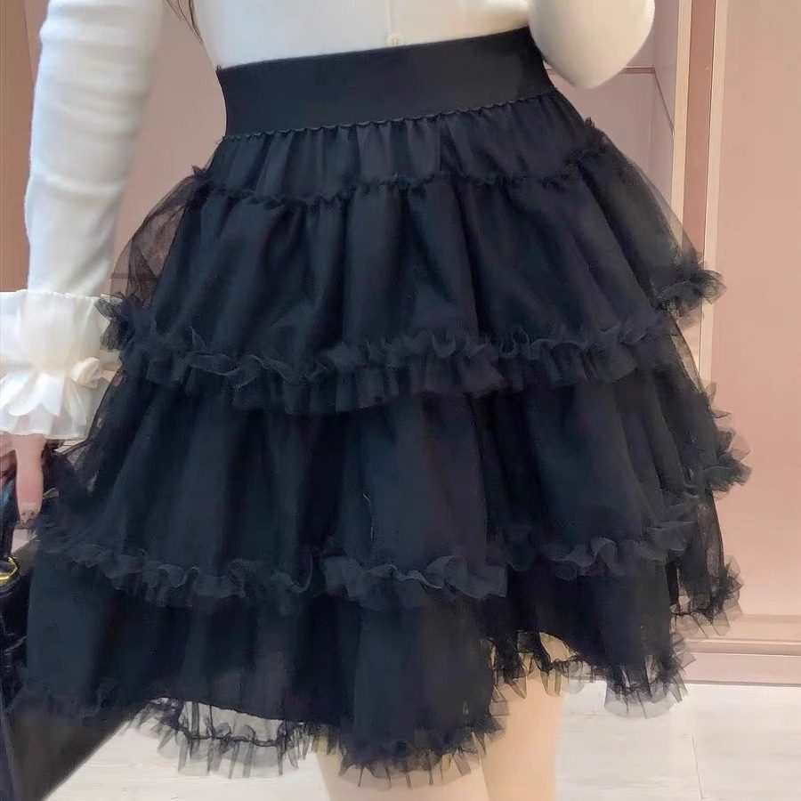 秋冬法式甜美时尚感高腰显瘦洋气网纱拼接蛋糕蓬蓬短款半身裙