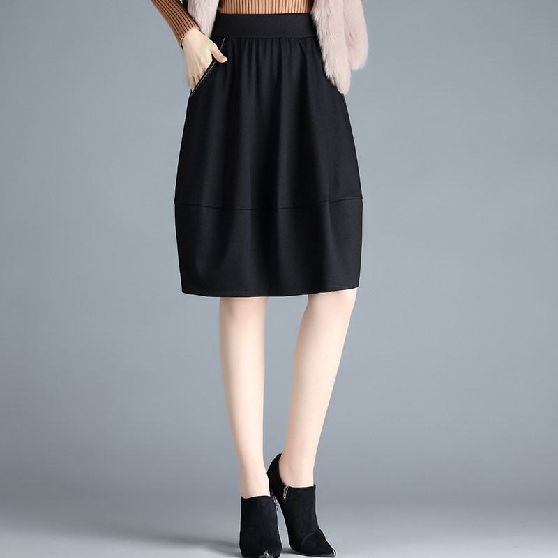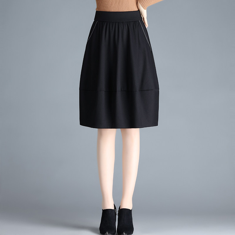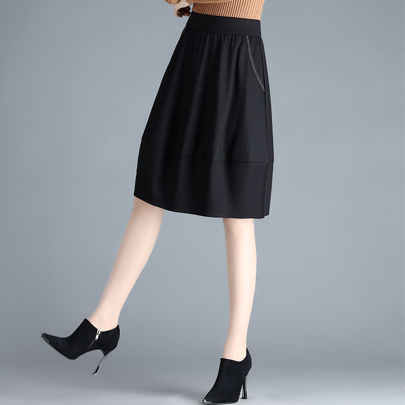 时尚黑色半身裙女2025春秋季新款松紧高腰a字花苞裙垂感显瘦中裙