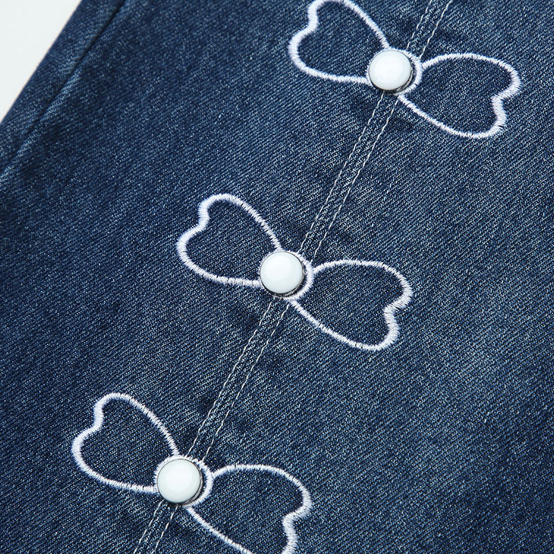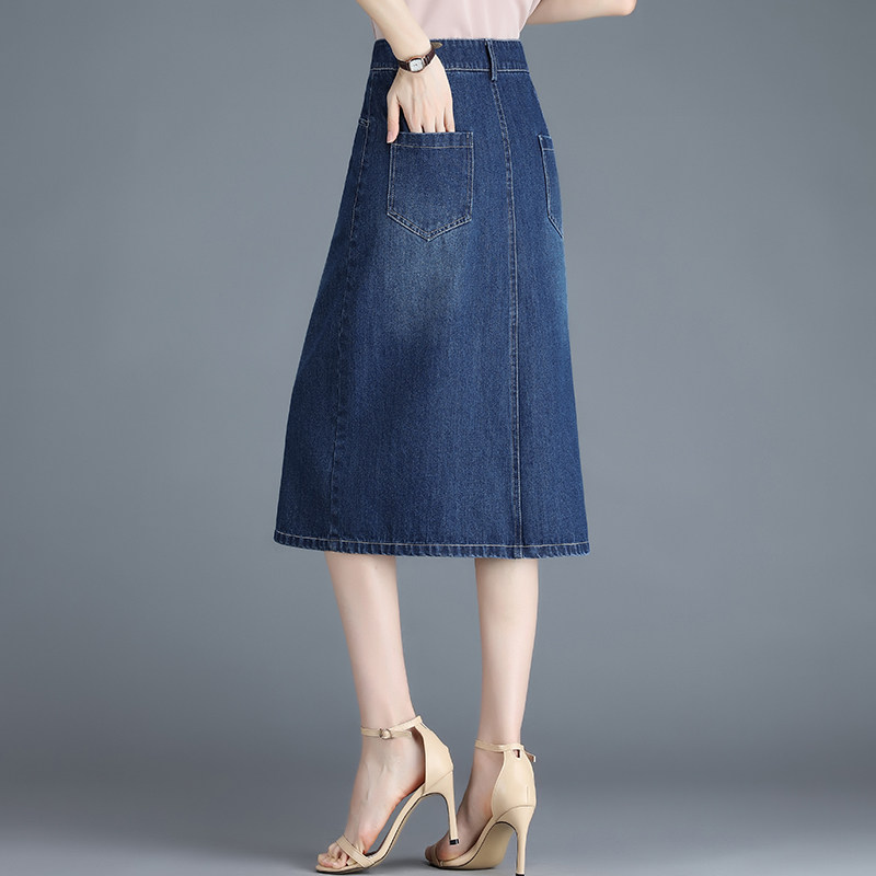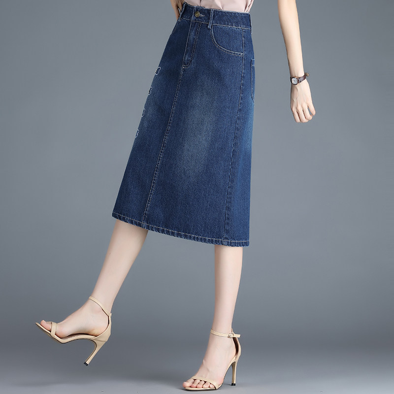 牛仔半身裙女a字裙夏季新款高腰休闲裙中长款刺绣开叉包臀裙