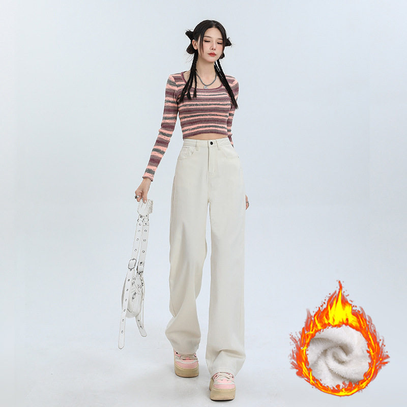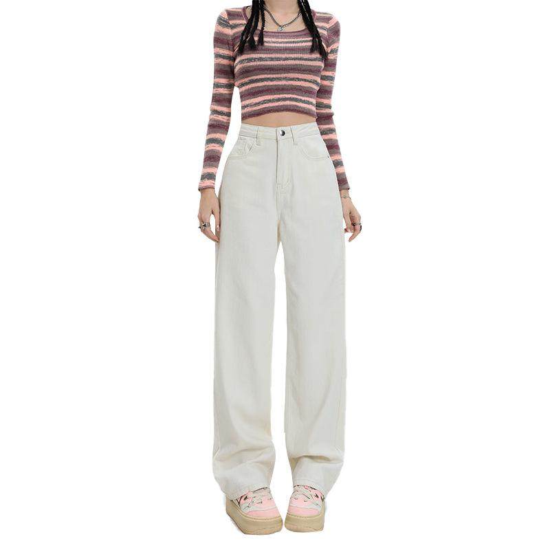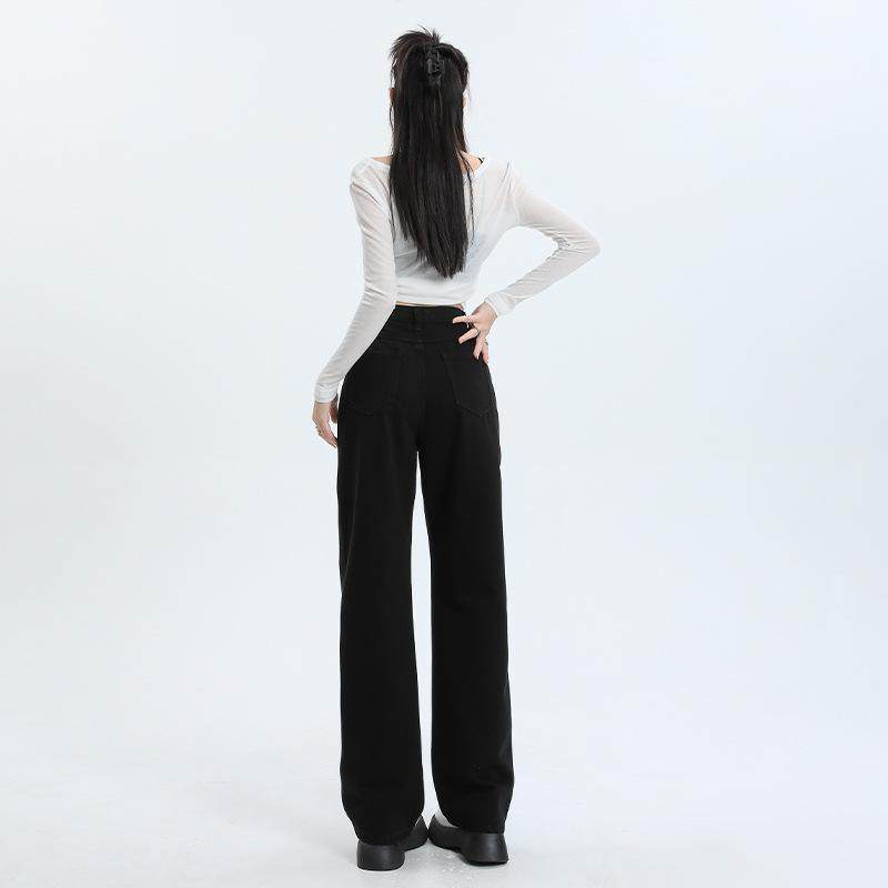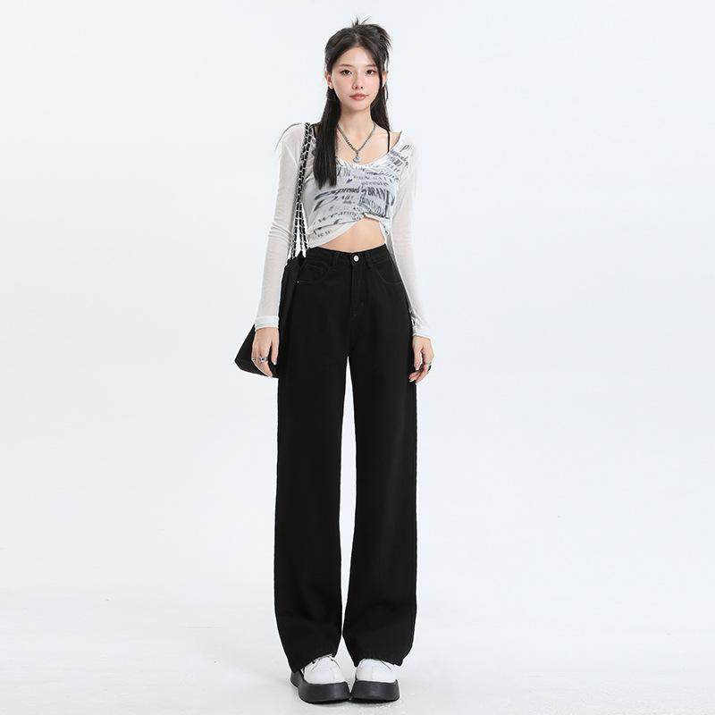 白色牛仔裤女2024春夏款高腰宽松显瘦黑色直筒拖地裤垂感阔腿裤潮