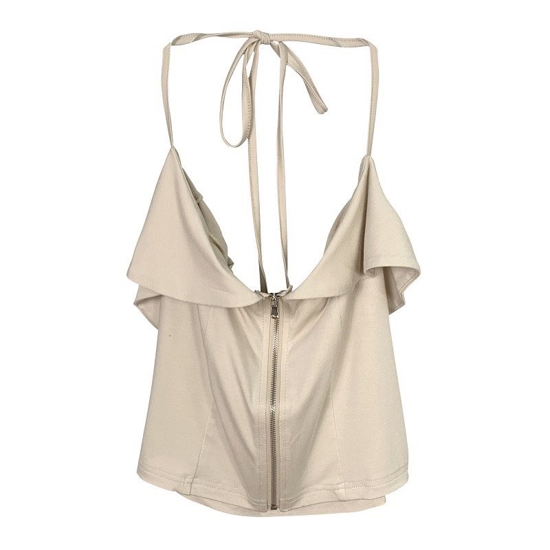 韩国东大门新款女爱豆同款吸睛派对战服拉链系带抹胸吊带背心上衣