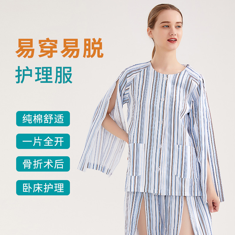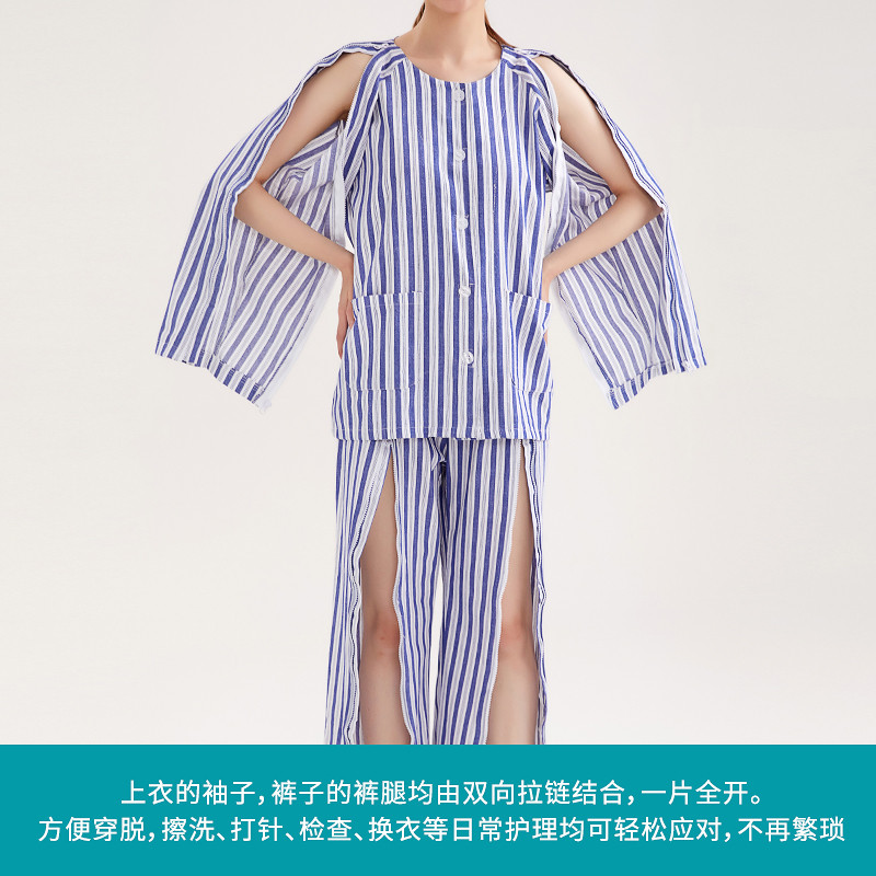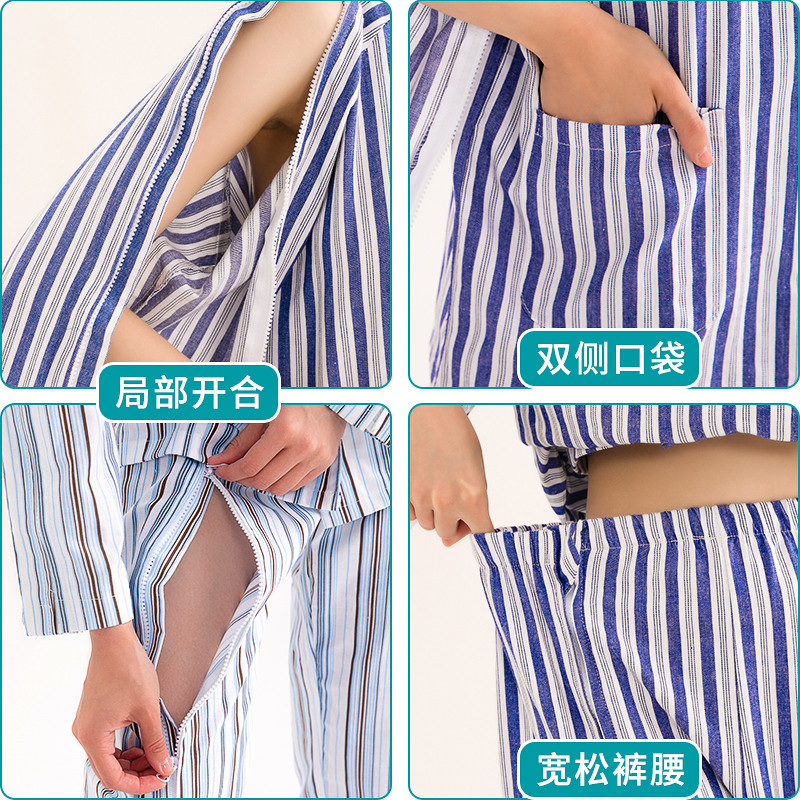易穿脱病号服picc置管衣服秋冬骨折术后拉链瘫痪纯棉老人护理服