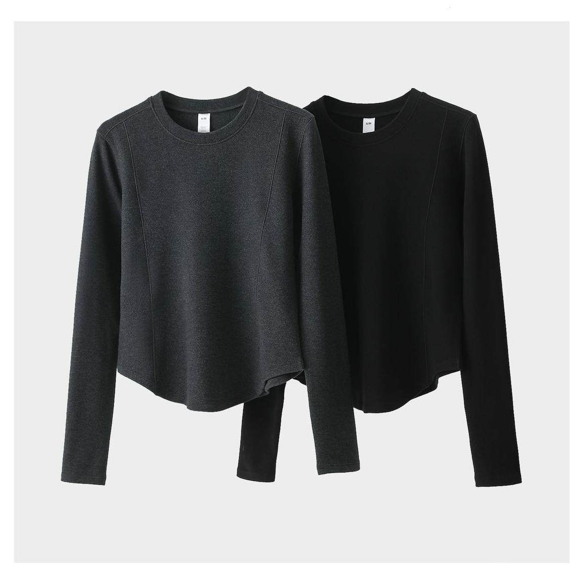 秋冬季女士修身时尚打底衫百搭舒适长袖短款T恤柔软拼接显瘦FX777