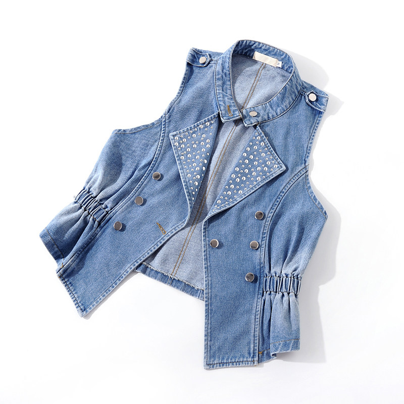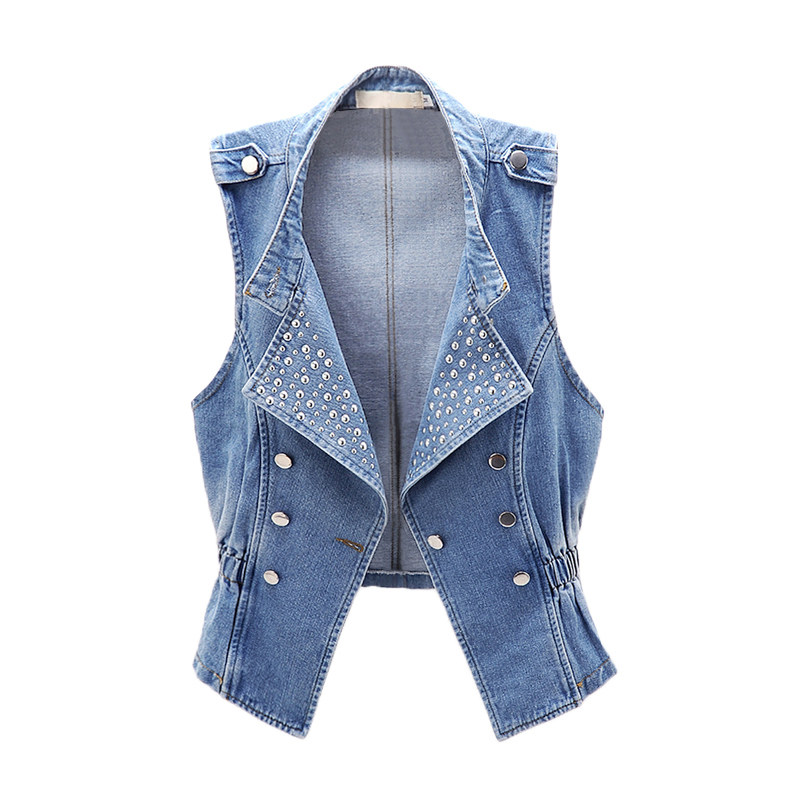 首页> 女装> 牛仔马甲女短款2025年春季新款韩版铆钉无袖马夹机车背心坎肩上衣