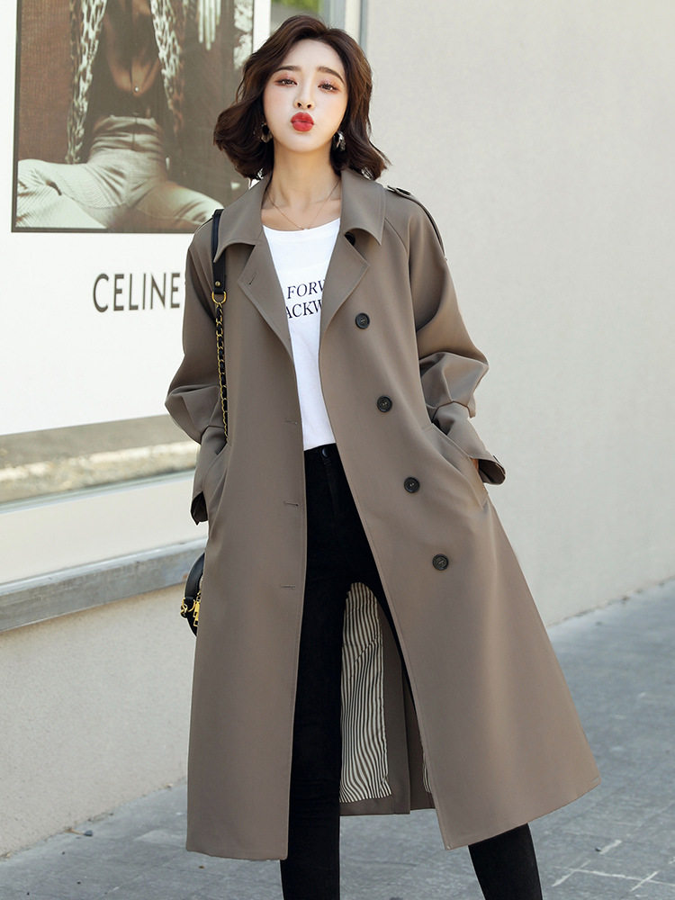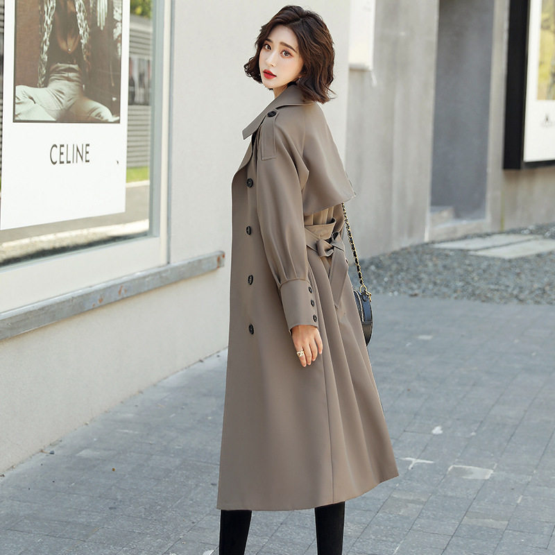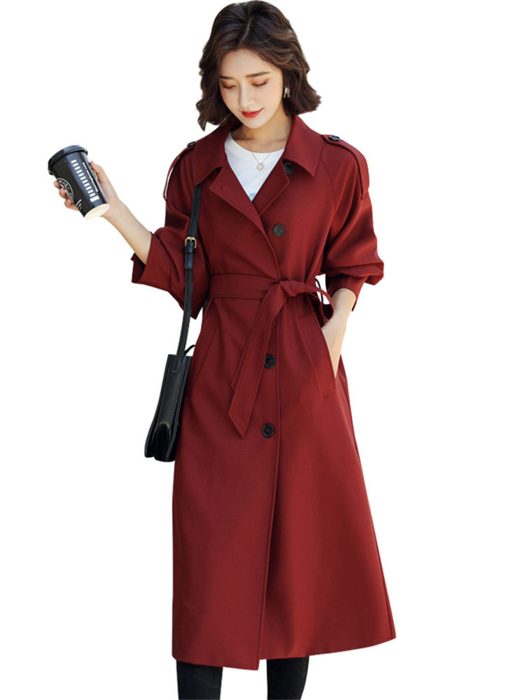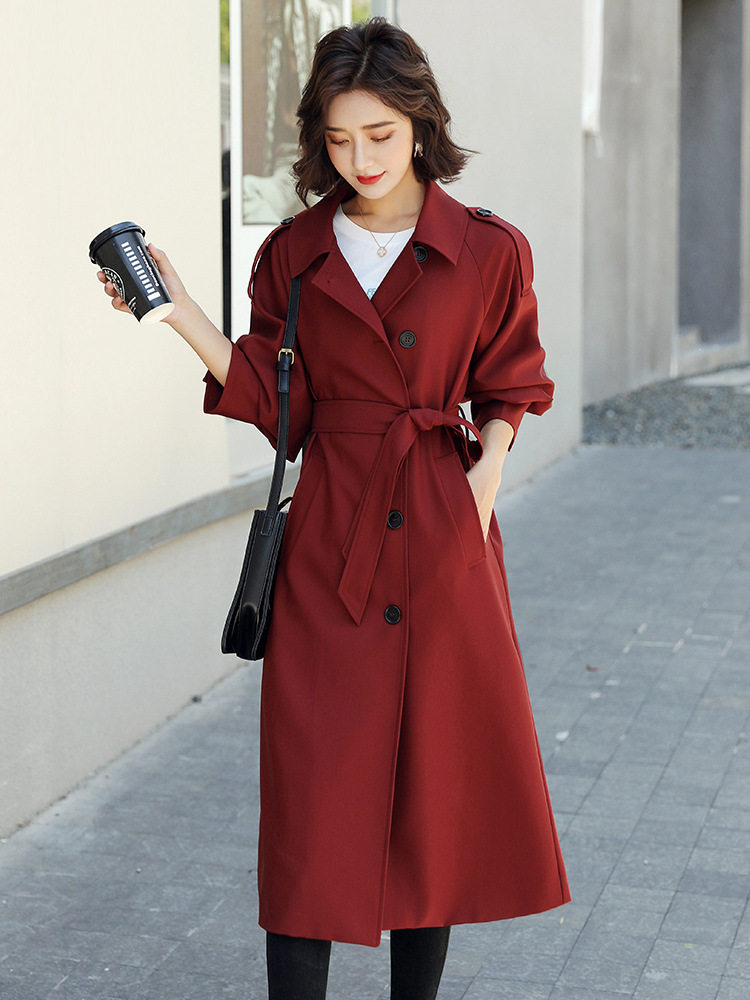 高端品质风衣女中长款2025新款垂感过膝大衣气质酒红色潮流外套