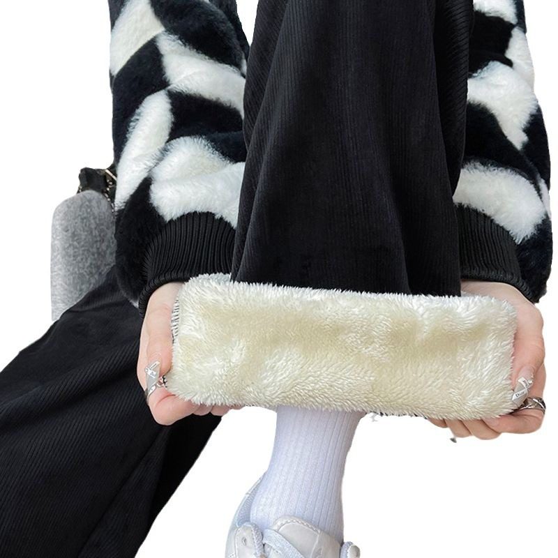 冬季东北外穿直筒窄版羊羔绒阔腿裤女高腰加绒加厚保暖灯芯绒裤子