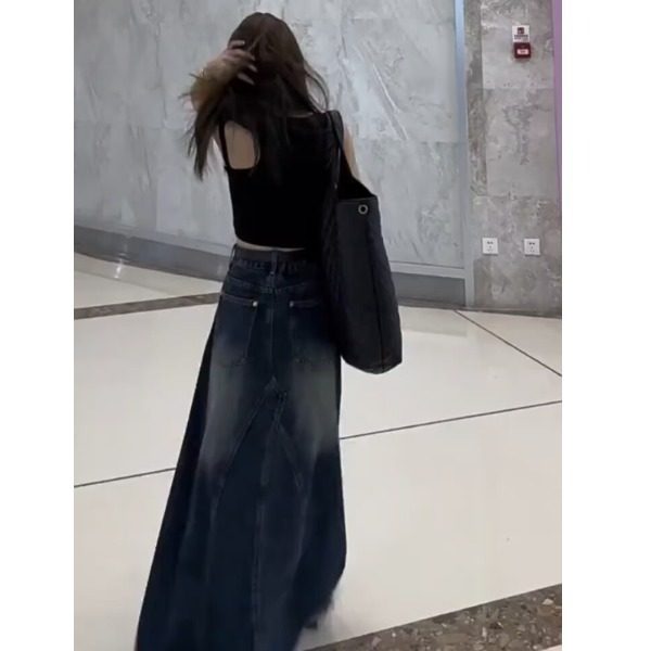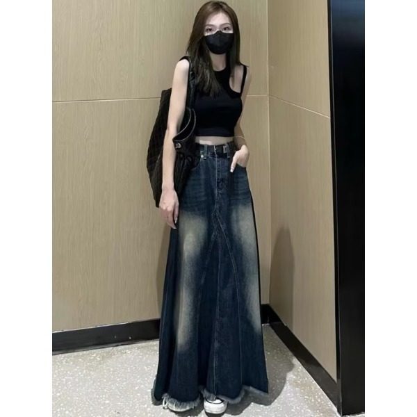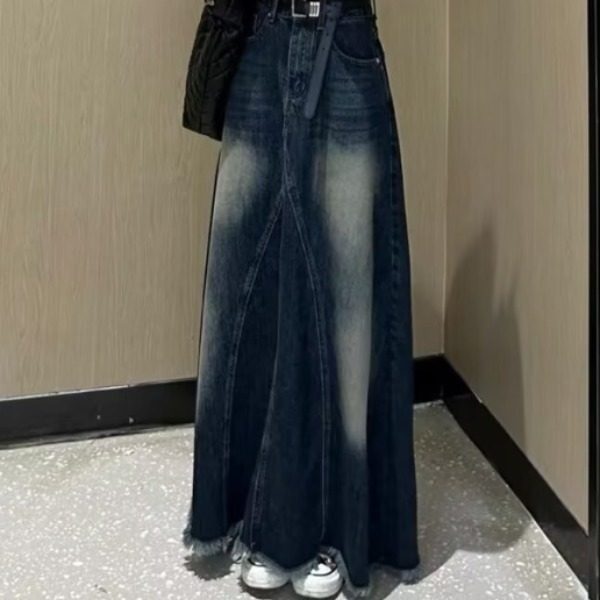复古水洗磨白牛仔半身裙女2025春季新款慵懒风不规则中长款A字裙