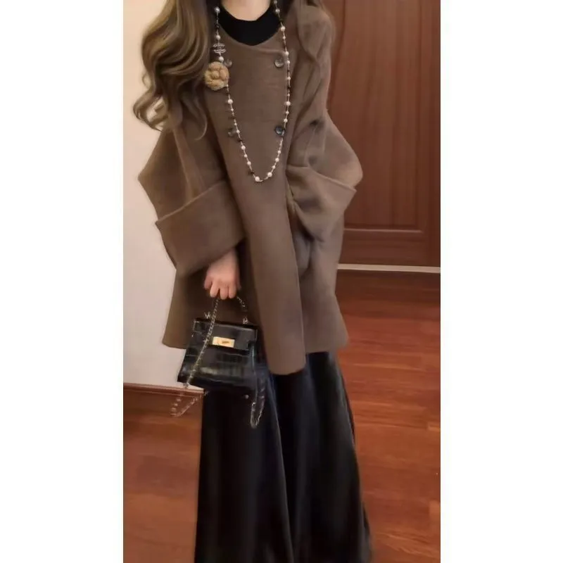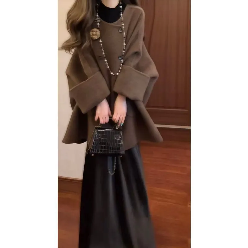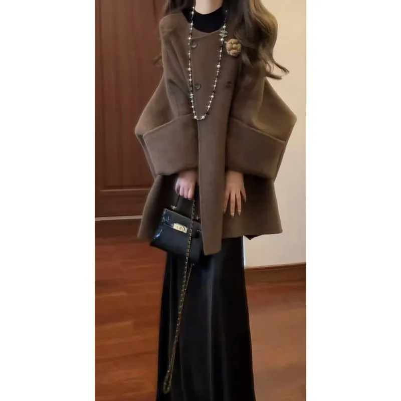 韩系气质财阀千金名媛风大小姐圆领外套秋冬新款加棉加厚大衣设计