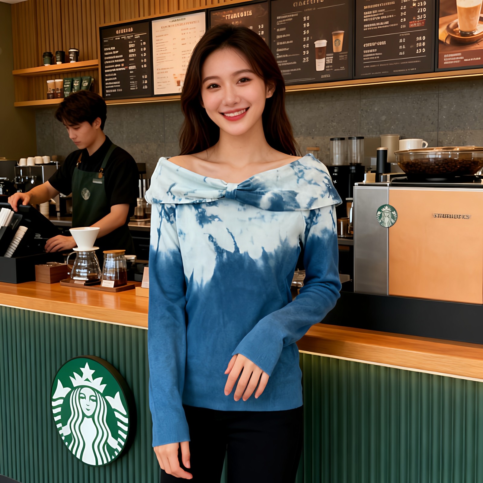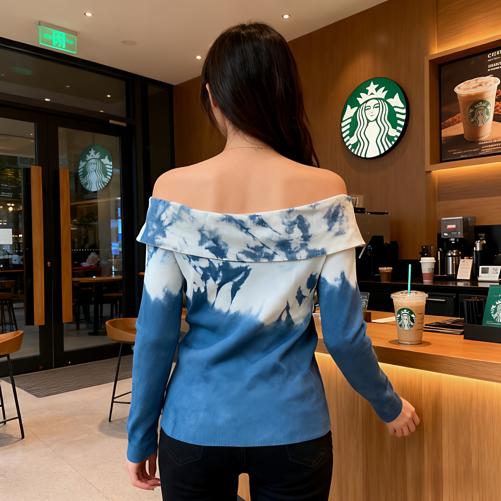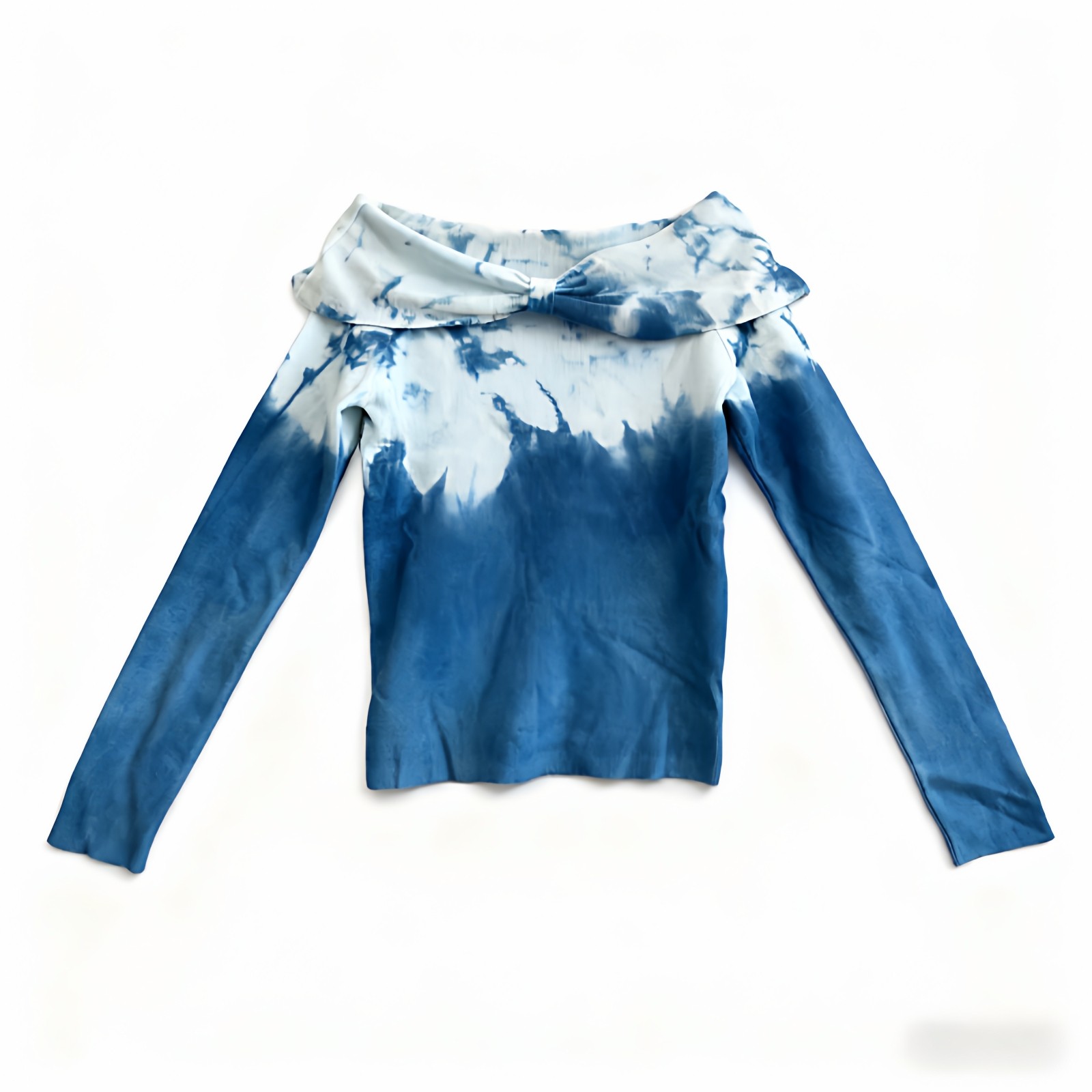 首页> 女装> 扎染针织衫一字领上衣女2026春季新款修身韩版露肩上衣百搭毛衣女