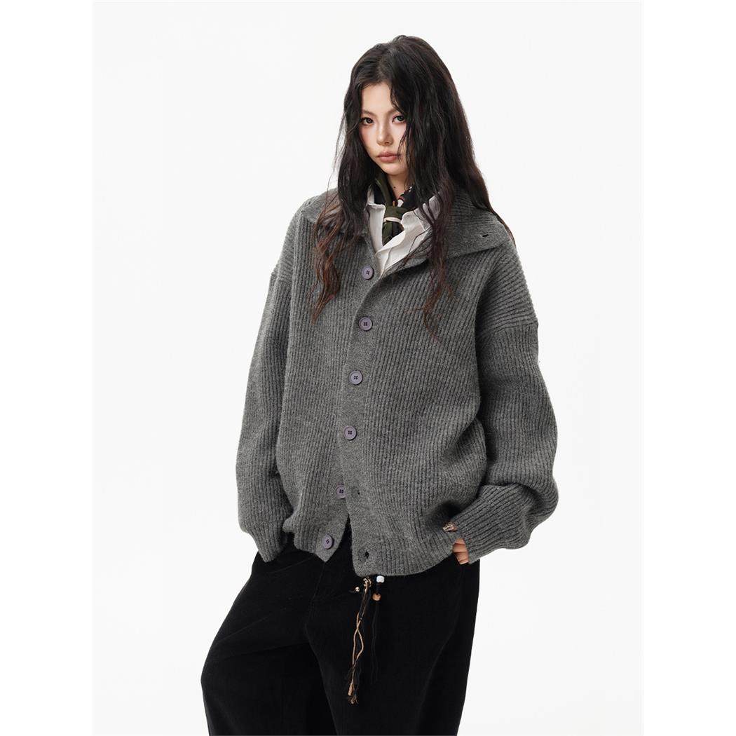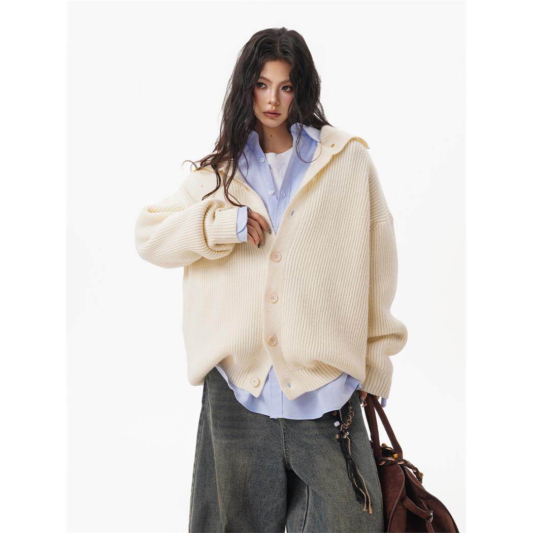 美式覆古纽扣高领开衫毛衣女男秋冬重磅宽松慵懒高级感针织衫外套