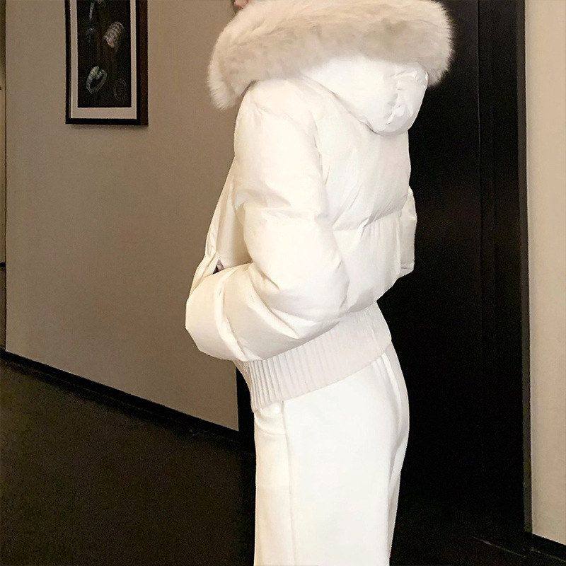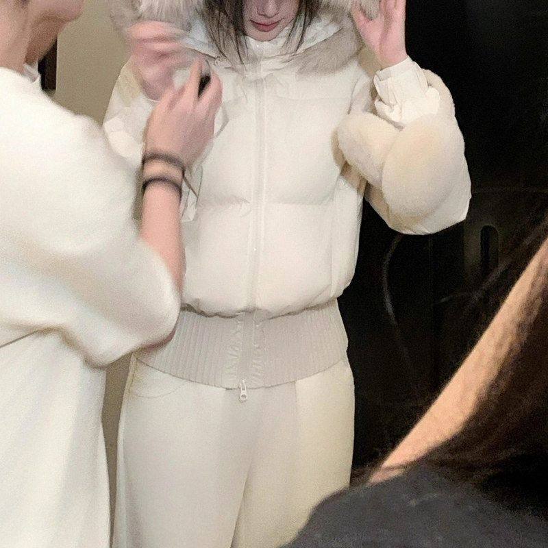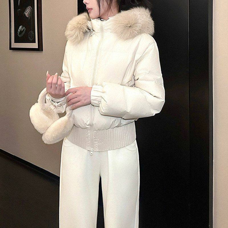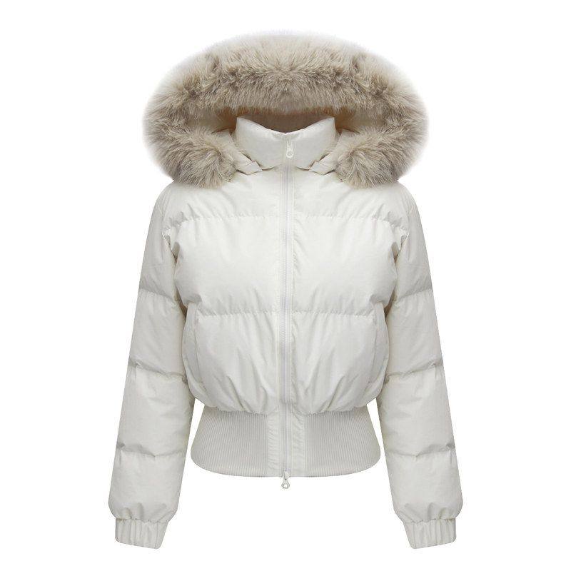 现货 收腰小暖包|好比例 连帽毛领90白鸭绒收腰短款立领羽绒服女