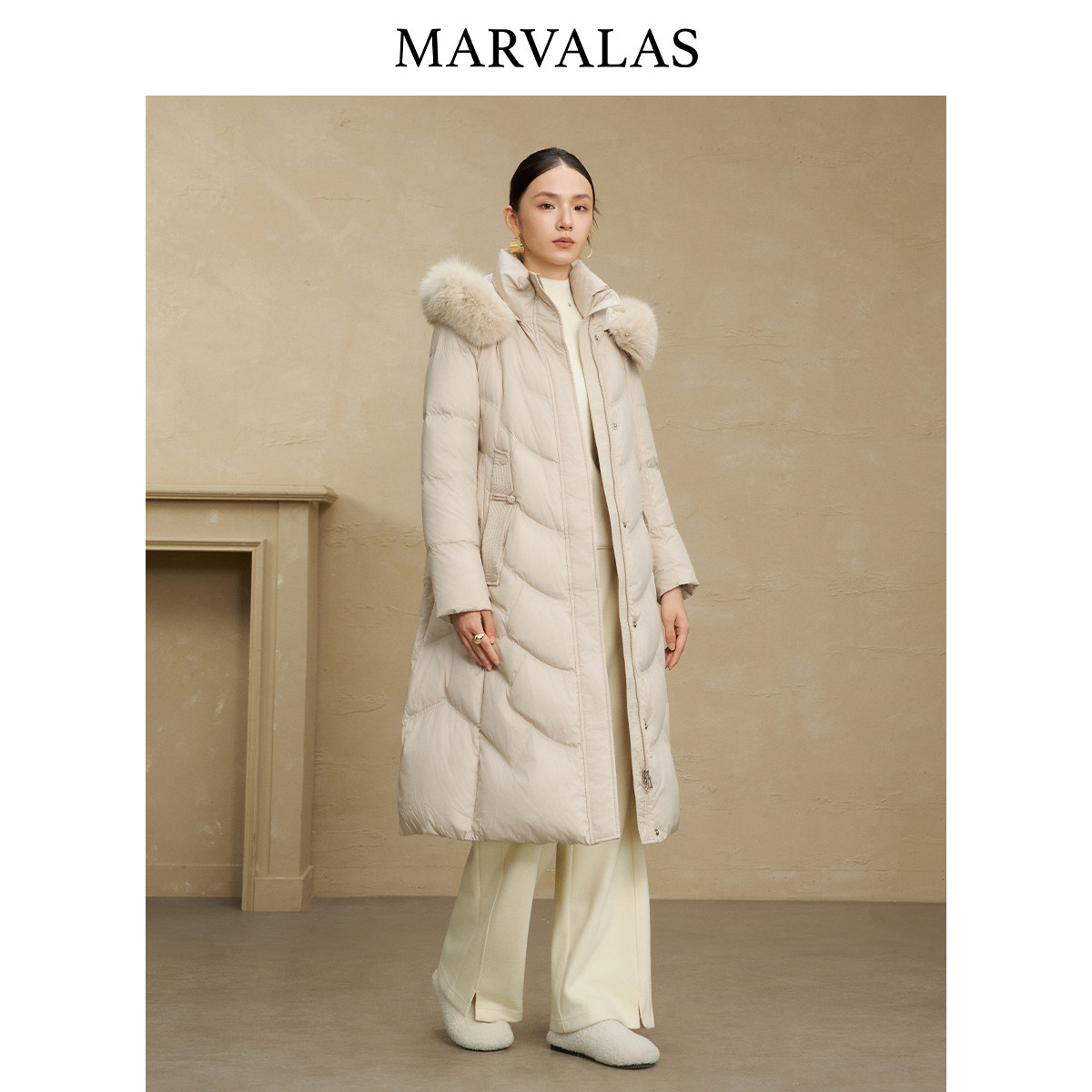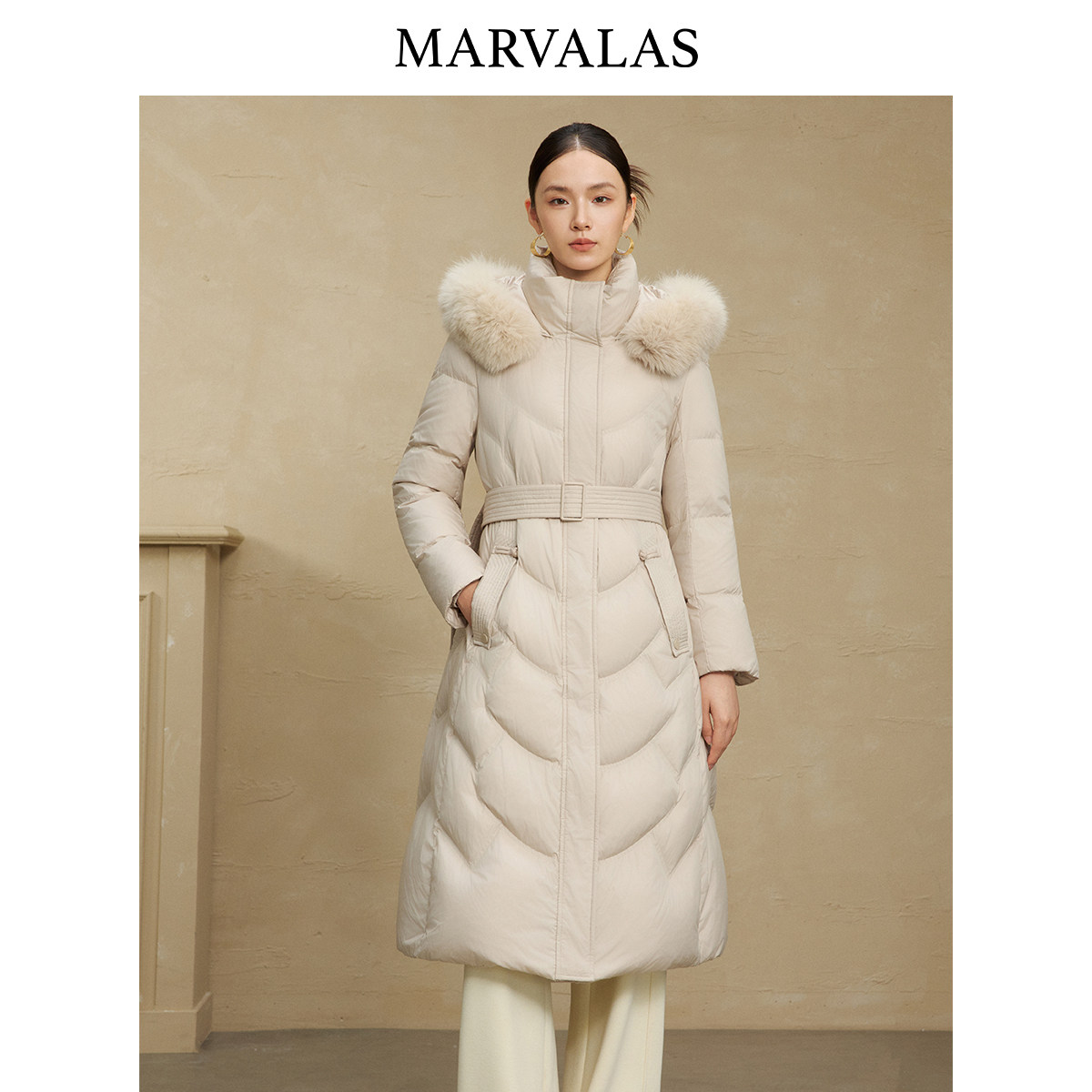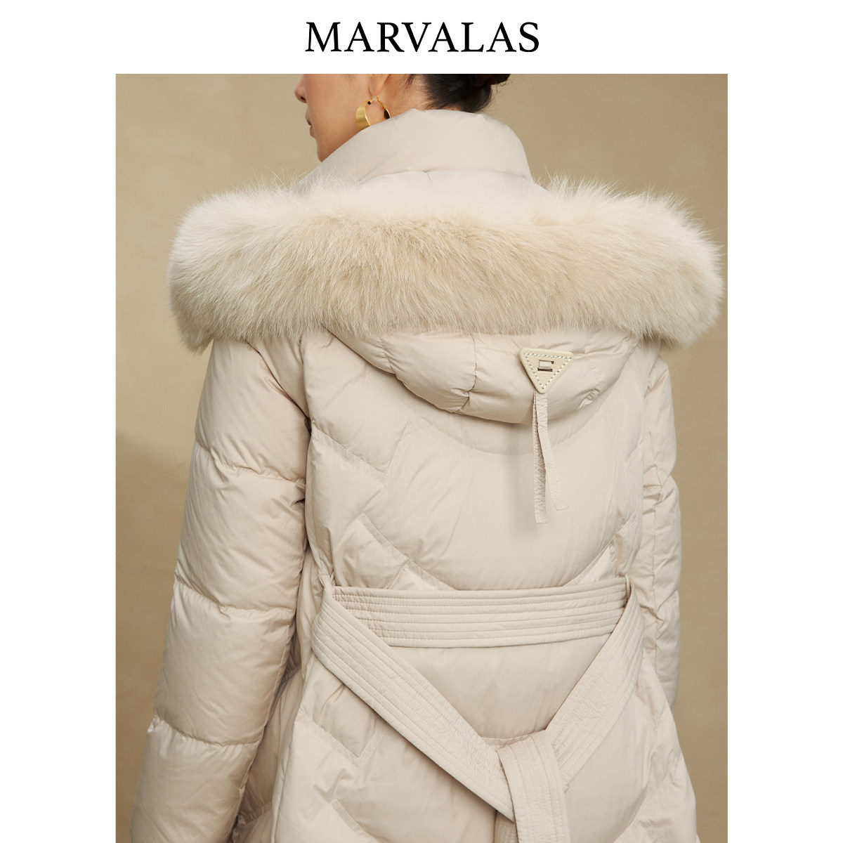 【廖廖粉丝专享】曼德诗长款羽绒服2025冬季新款连帽收腰设计纯色