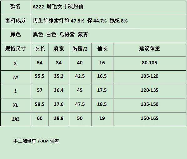 2026春夏新款女款圆领短袖T恤纯色百搭磨毛款A222