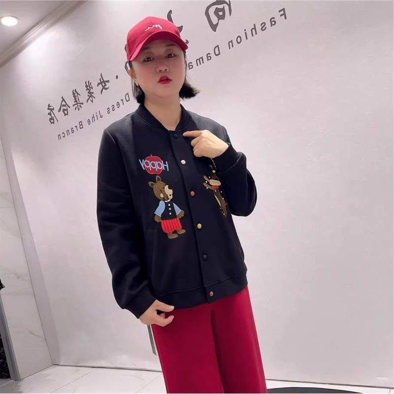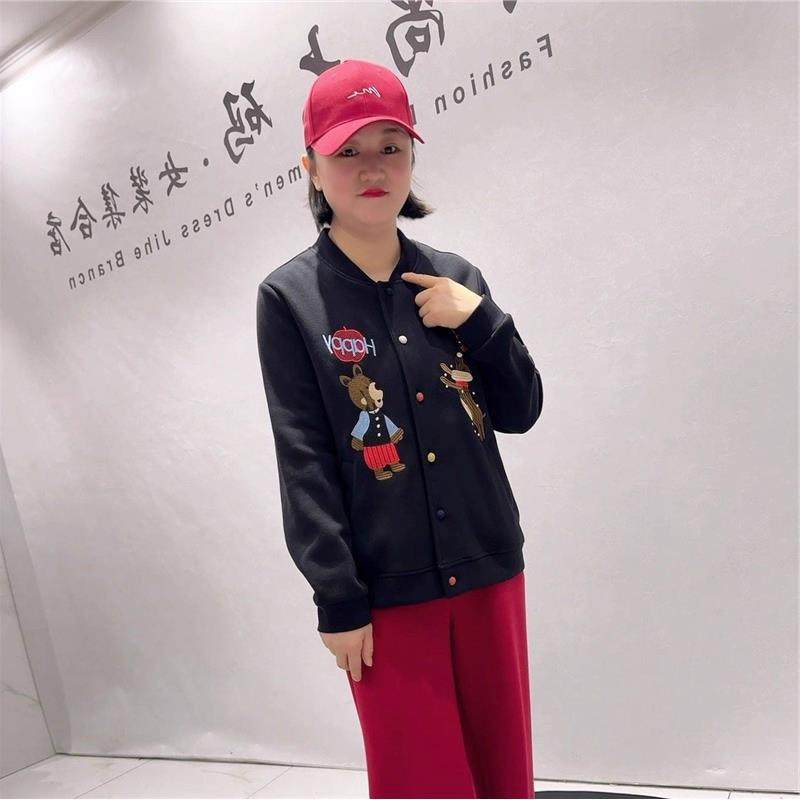 针丝缘2026春装6391圆领棒球服外套加大女装加肥加大减龄开衫女潮