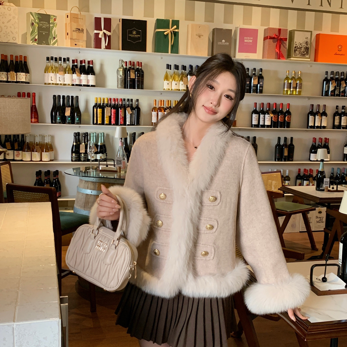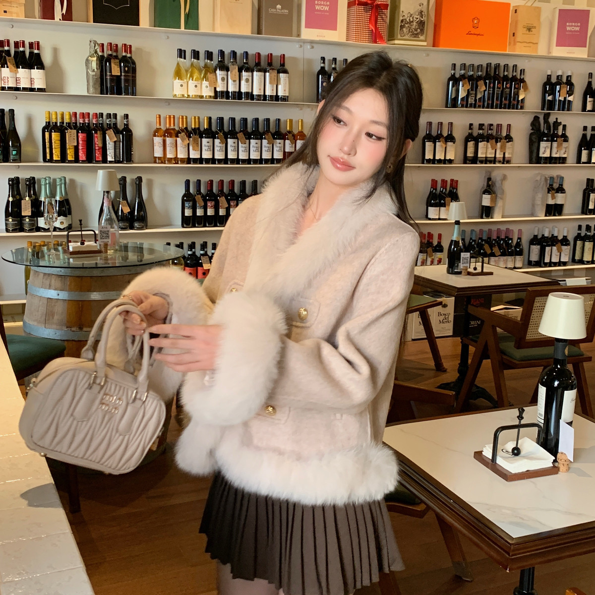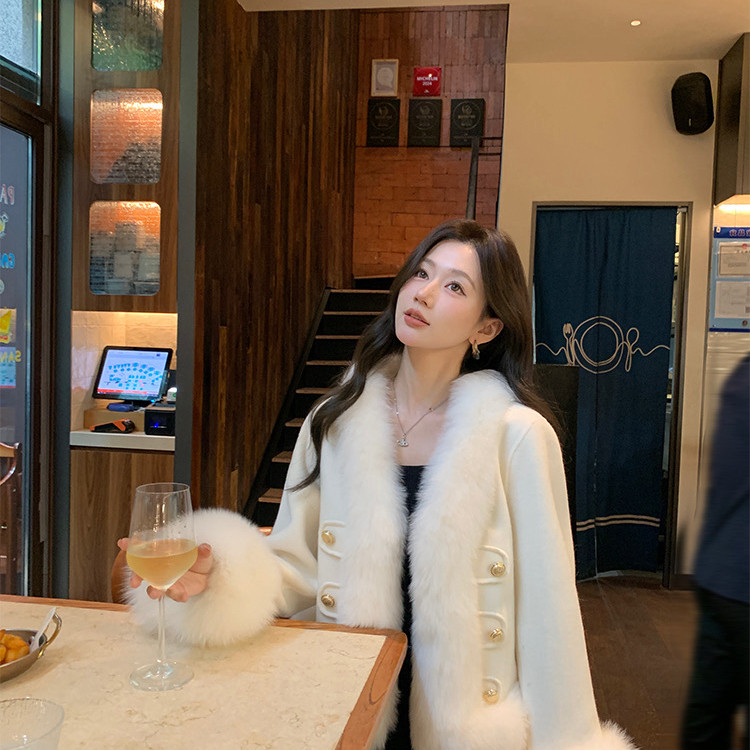冬上新2025新款小香风高级狐狸毛羊毛外套(含100澳毛)