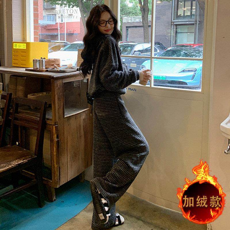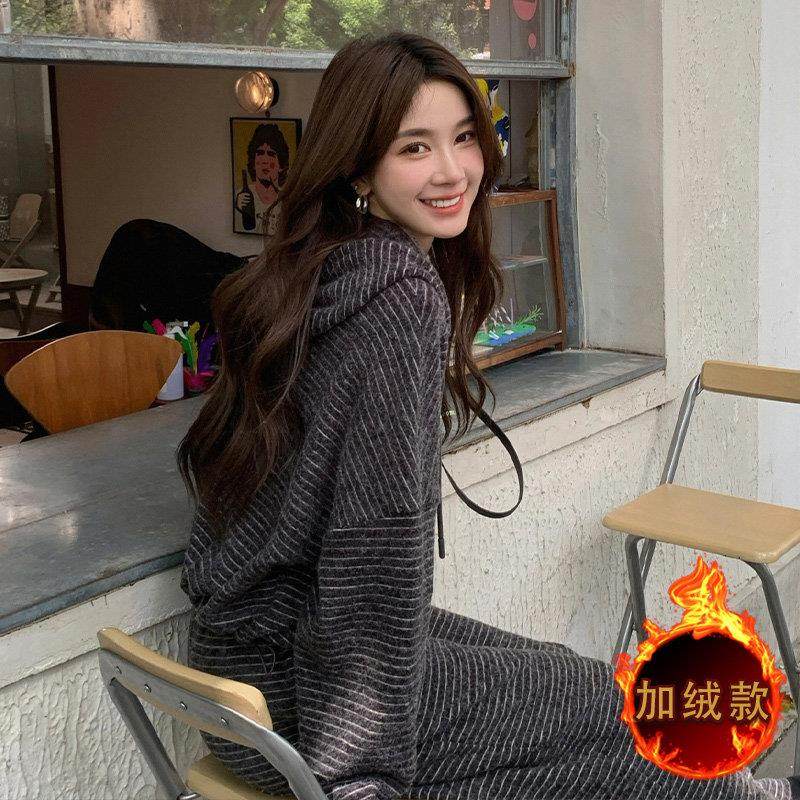 首页> 女装> 欧洲站休闲运动套装女秋冬2025年新款时尚洋气加绒加厚卫衣两件套