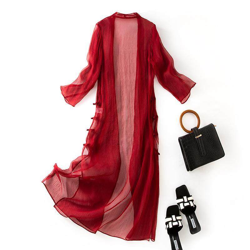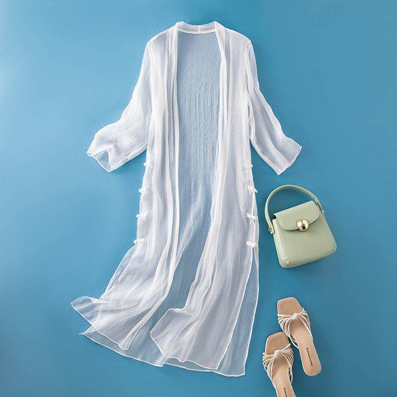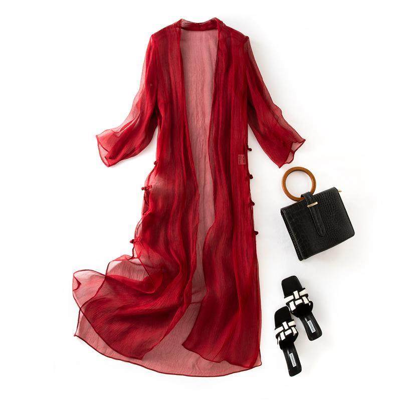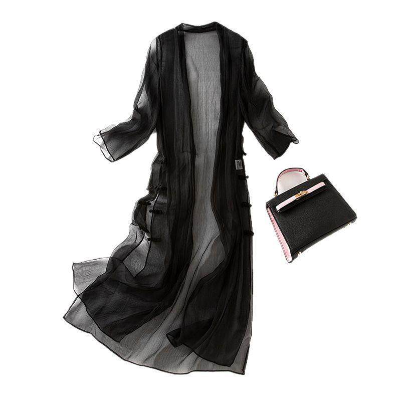 真丝防晒衫女中长款夏季薄款长风衣桑蚕丝飘逸披肩外套潮85048