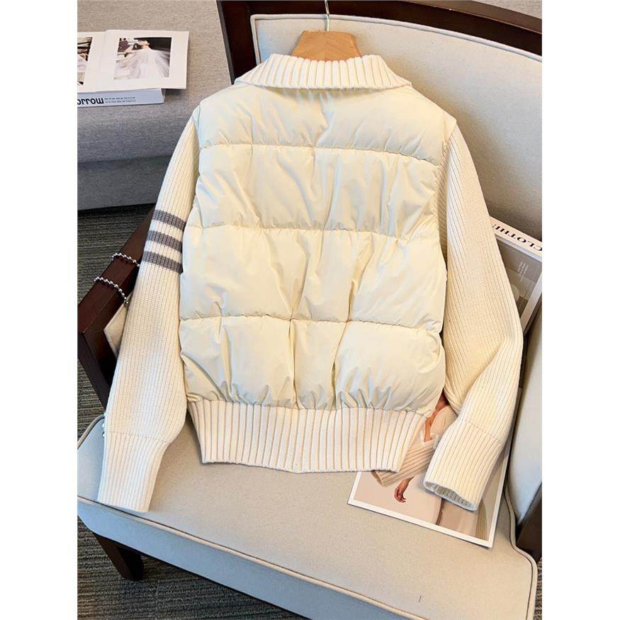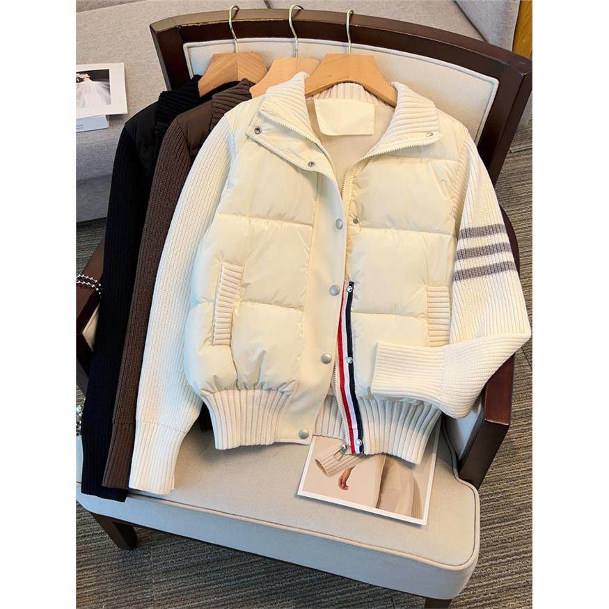 小个子立领短款棉服女冬季2025新款针织拼接设计感休闲棉袄外套潮
