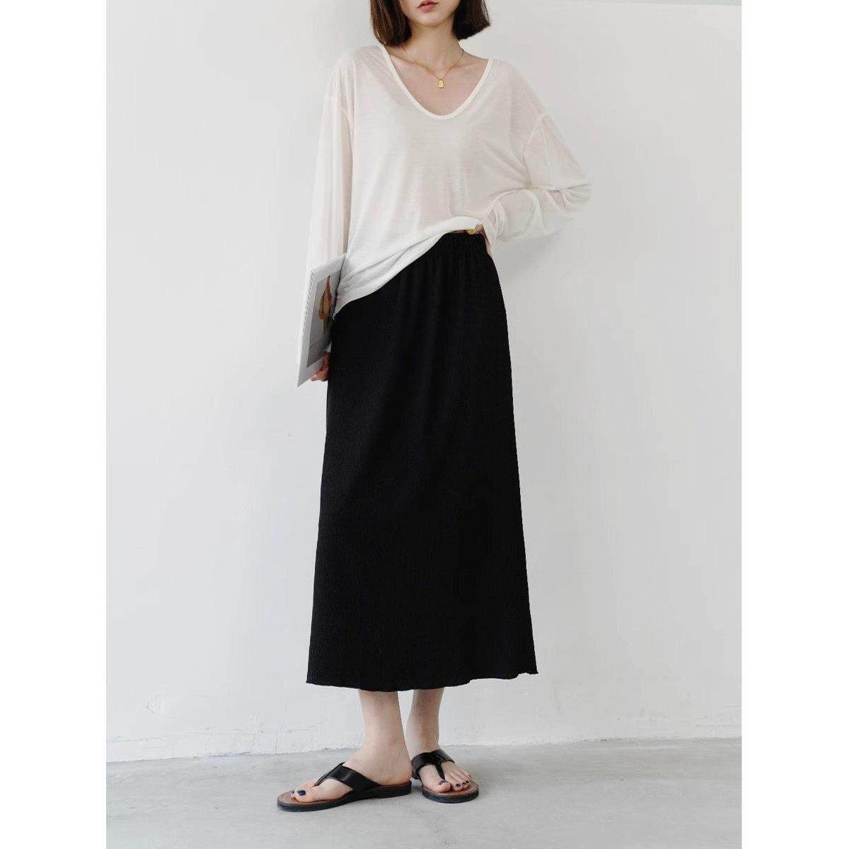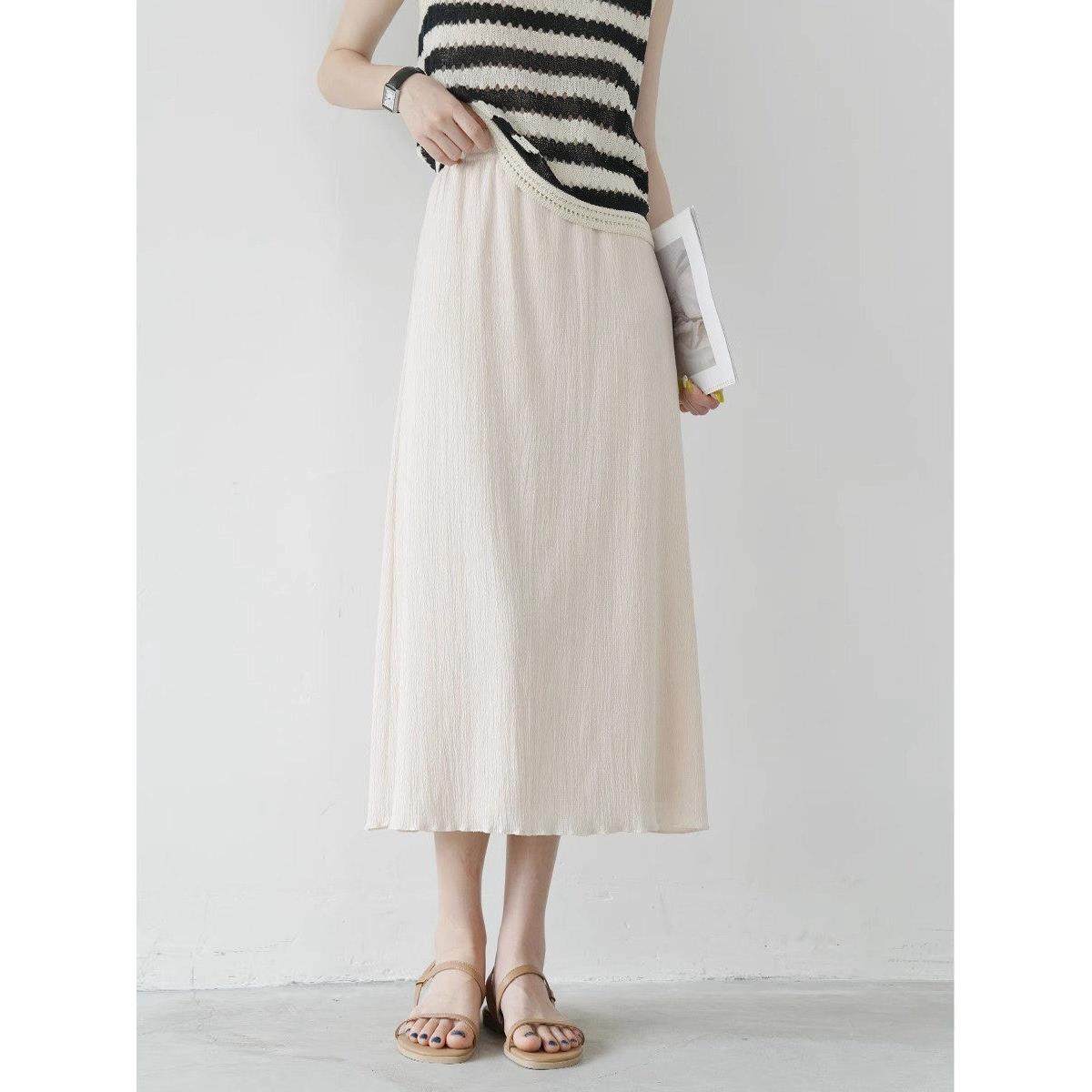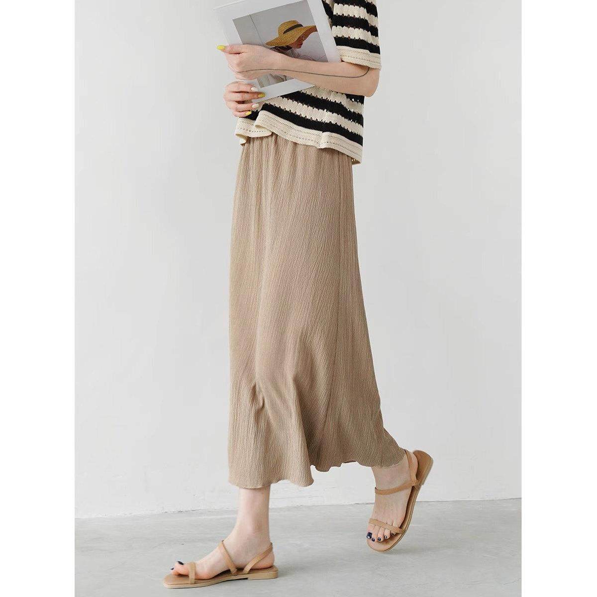 首页> 女装> 卡其色肌理感半身裙女2025夏季新款复古褶皱a字裙过膝垂感中长裙