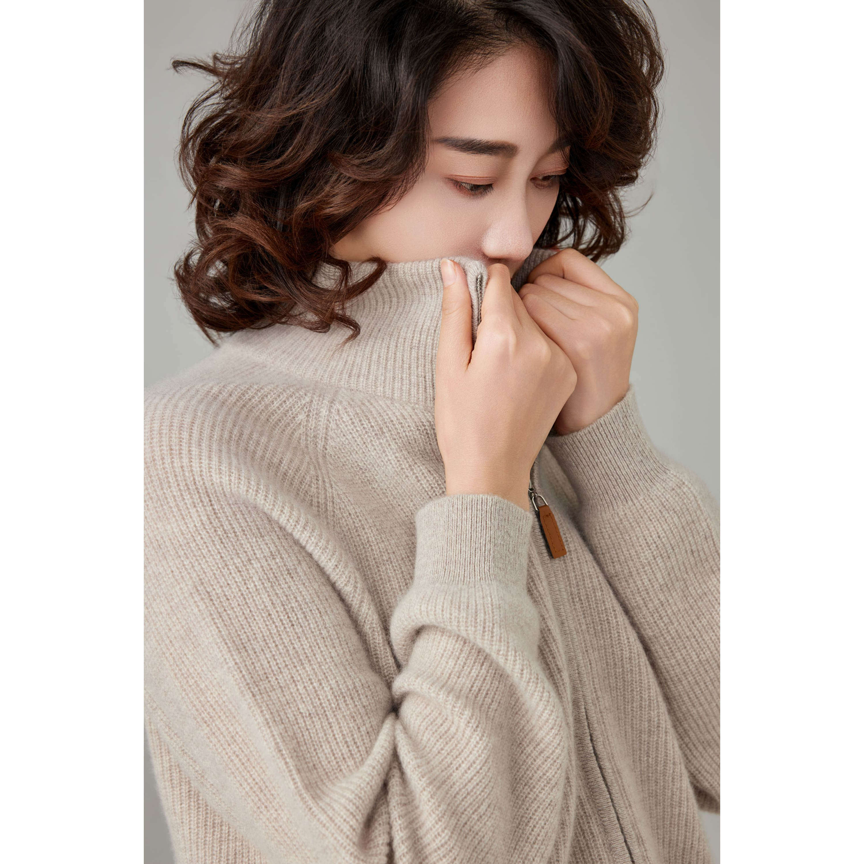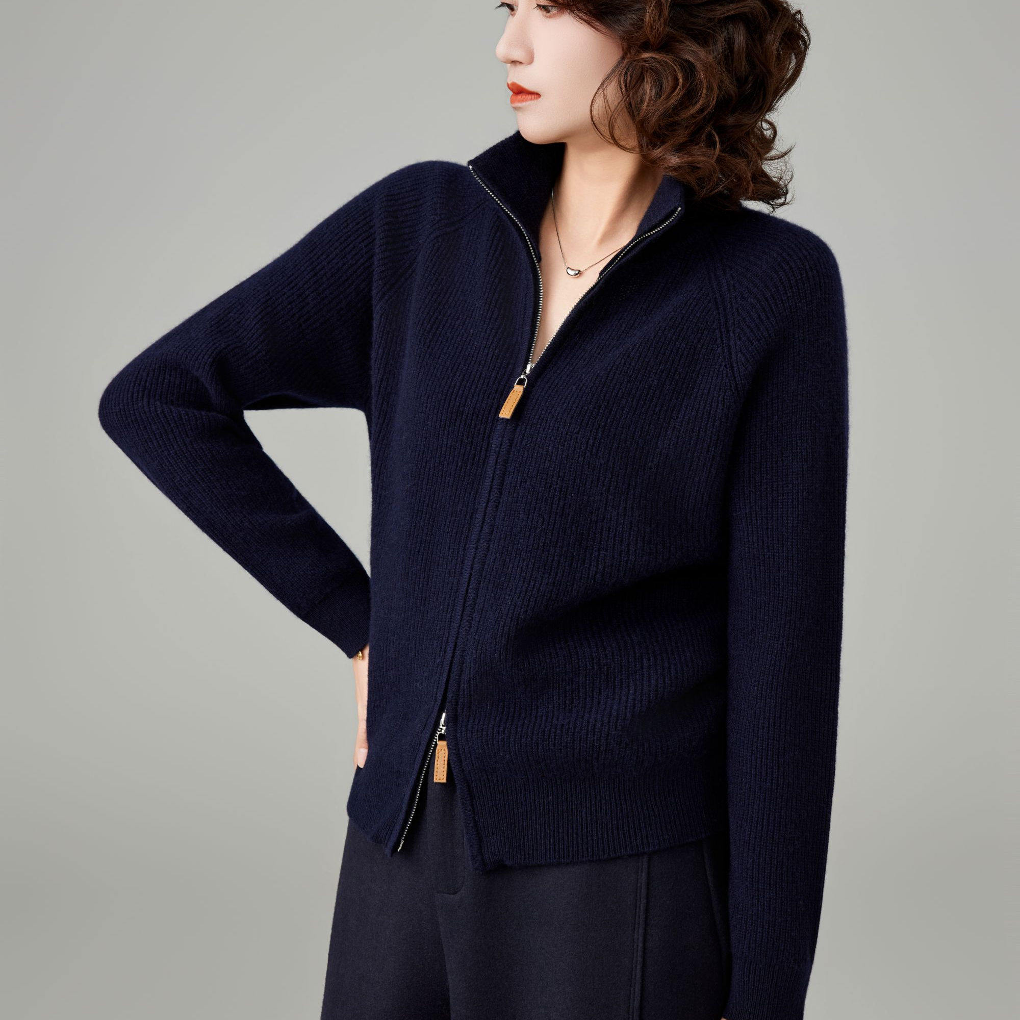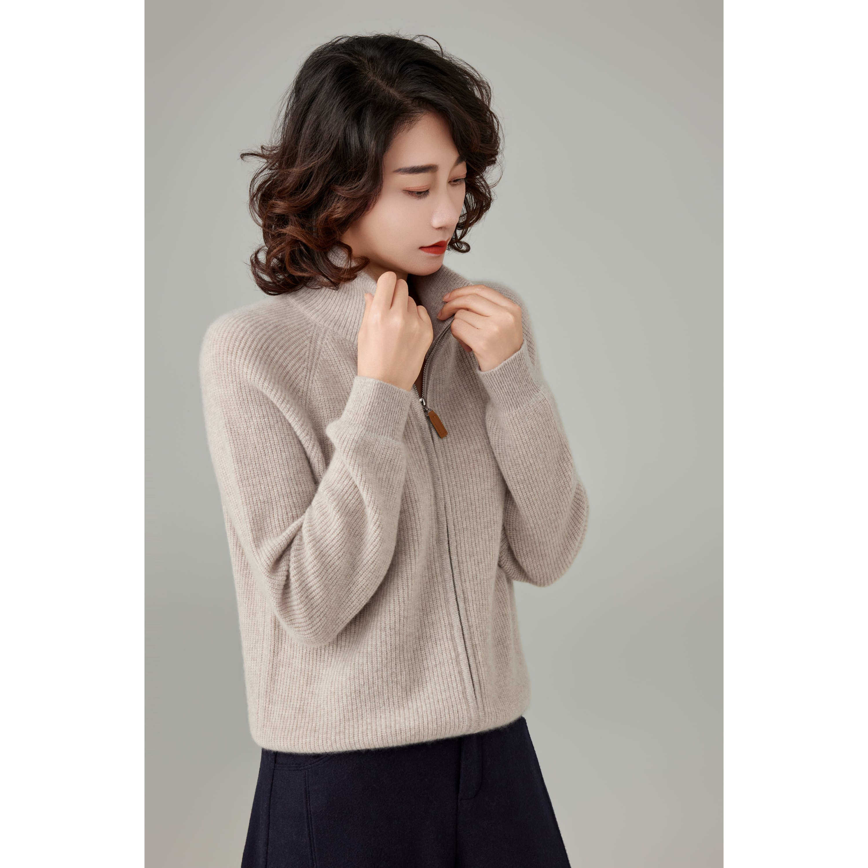 100%纯山羊绒软糯拉链开衫针织长袖气质百搭拉链立领翻领显瘦舒适