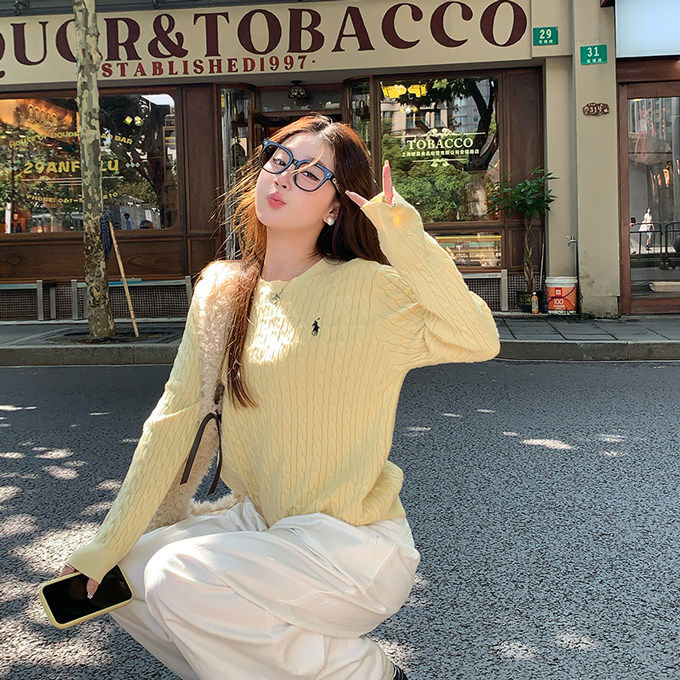 鹅黄色毛衣女款2025新款外穿软糯麻花套头针织衫内搭打底长袖上衣