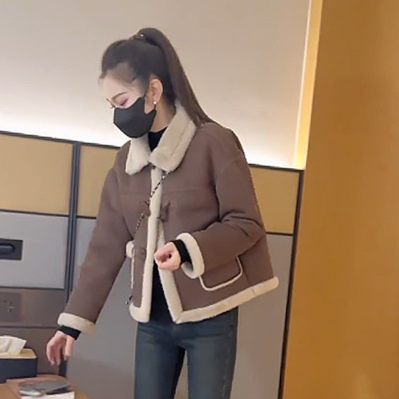 百搭洋气麂皮绒皮毛一体外套女2025秋冬季小个子保暖加厚长袖上衣