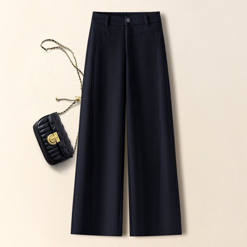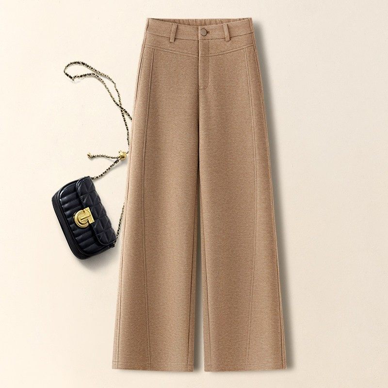 高档灰色羊绒阔腿裤女秋冬2025新款加绒加厚羊毛呢九分糯米直筒裤