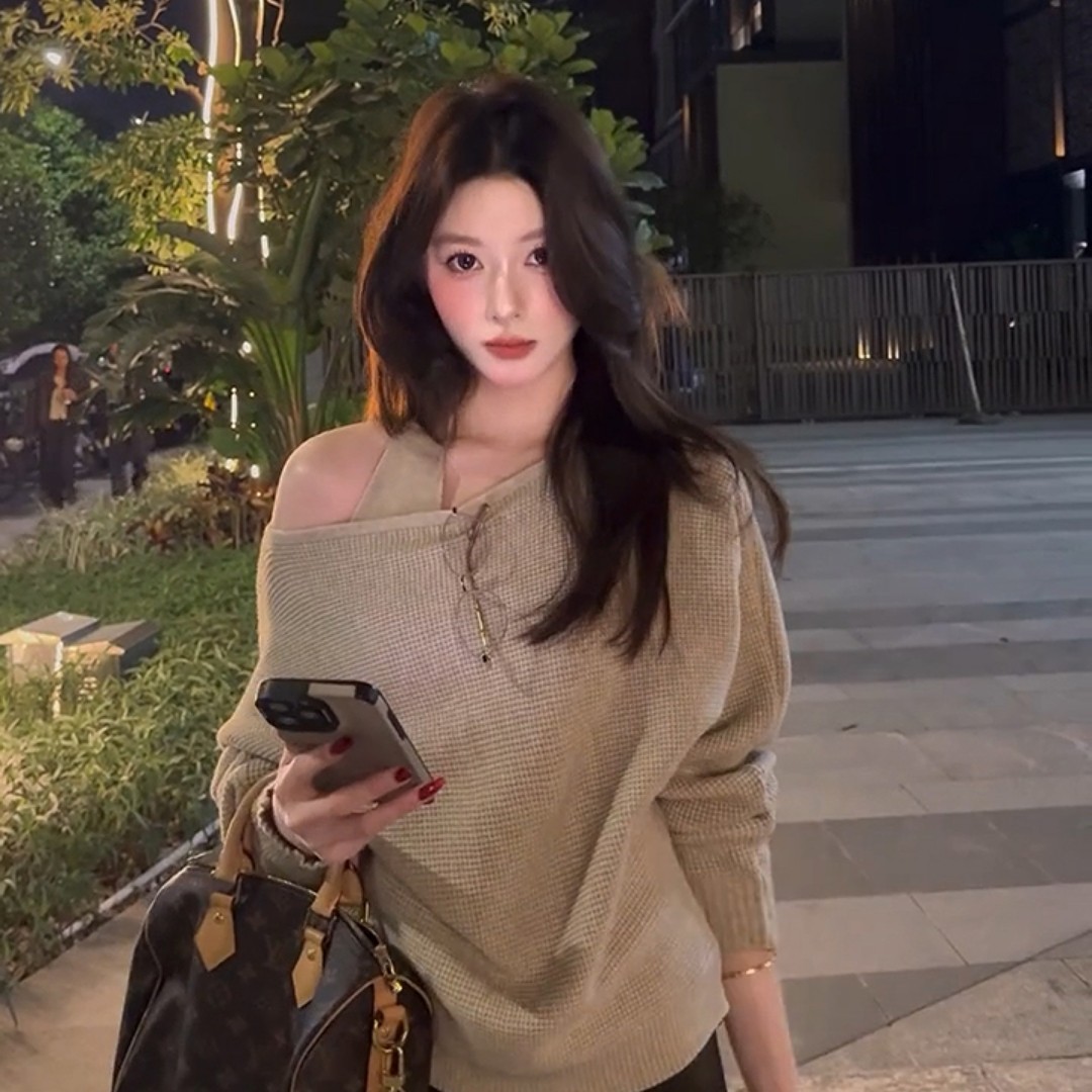 已到货 韩里韩气多种穿法春秋气质华夫格宽松针织衫背心套装