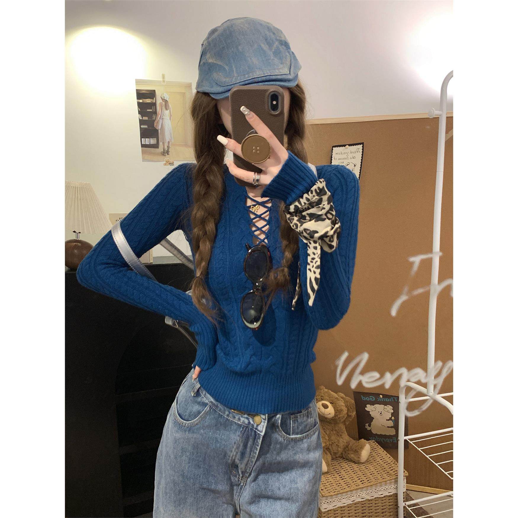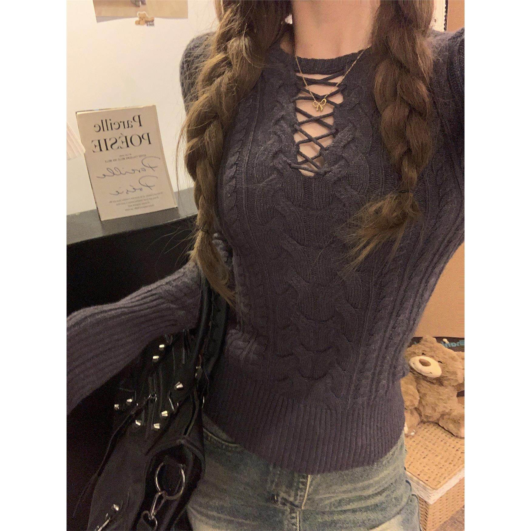 加州美院覆古设计感收腰显瘦打底毛衣女修身内搭针织叠穿上衣冬