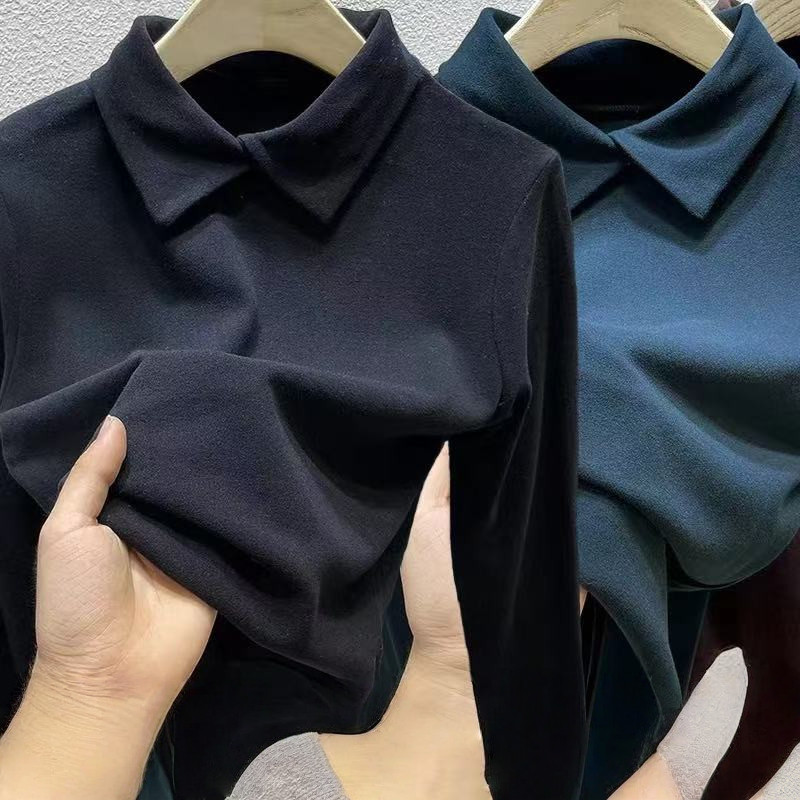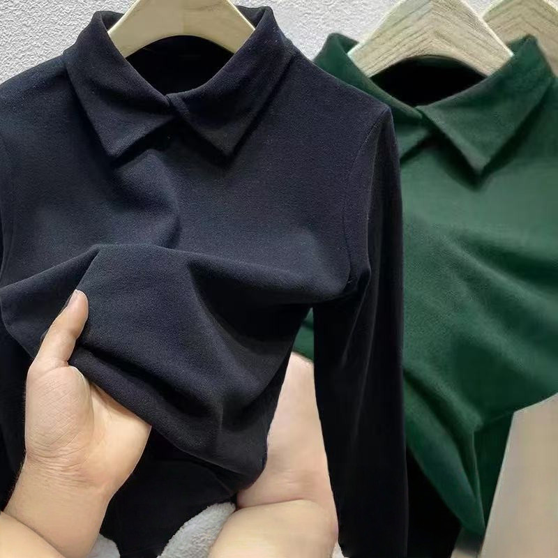 polo领德绒打底衫女2023冬季新款内搭加绒半高领t恤上衣时尚韩版