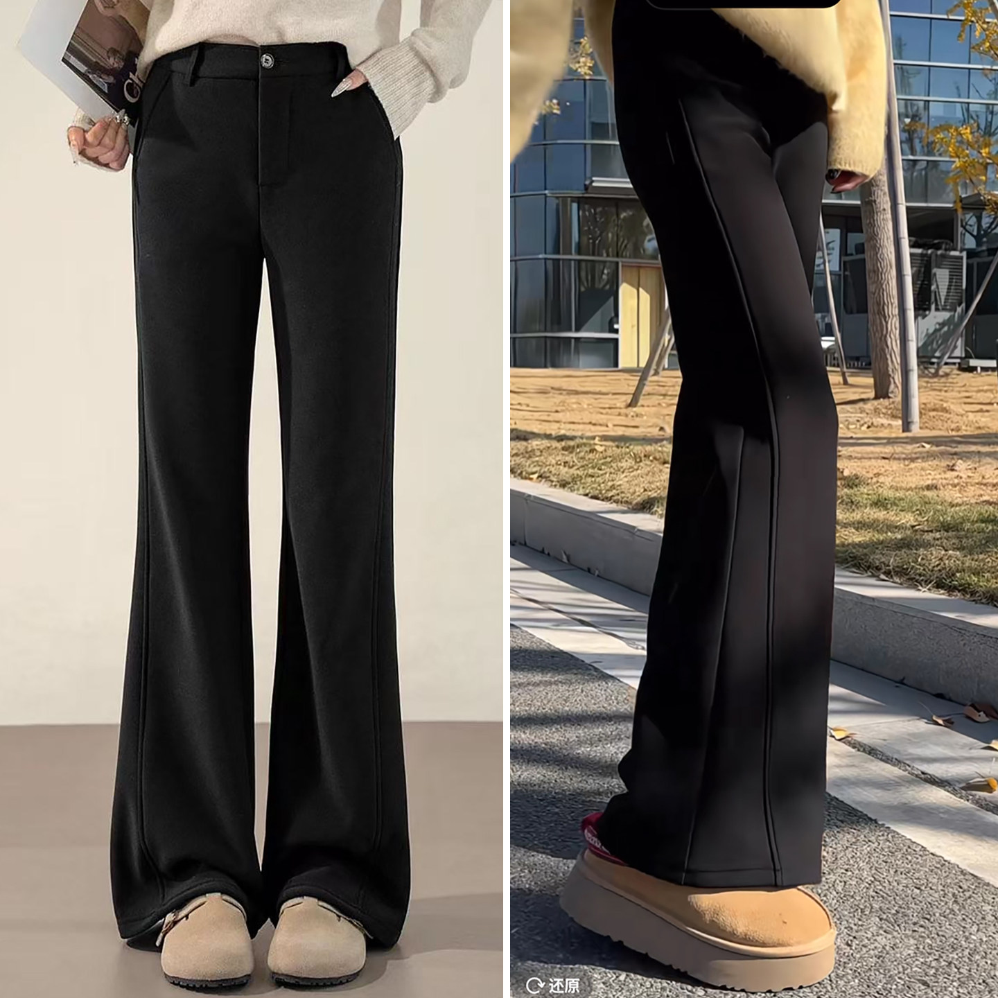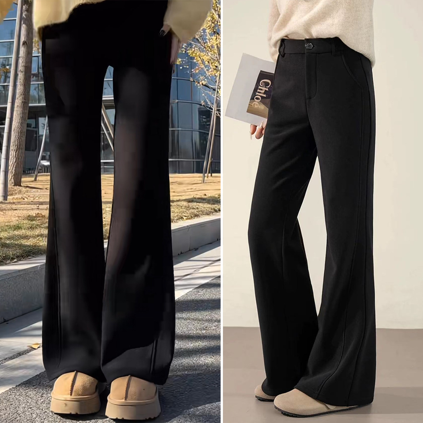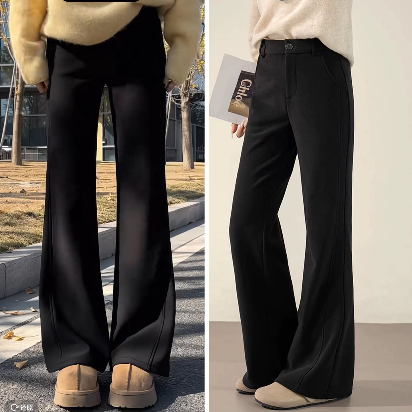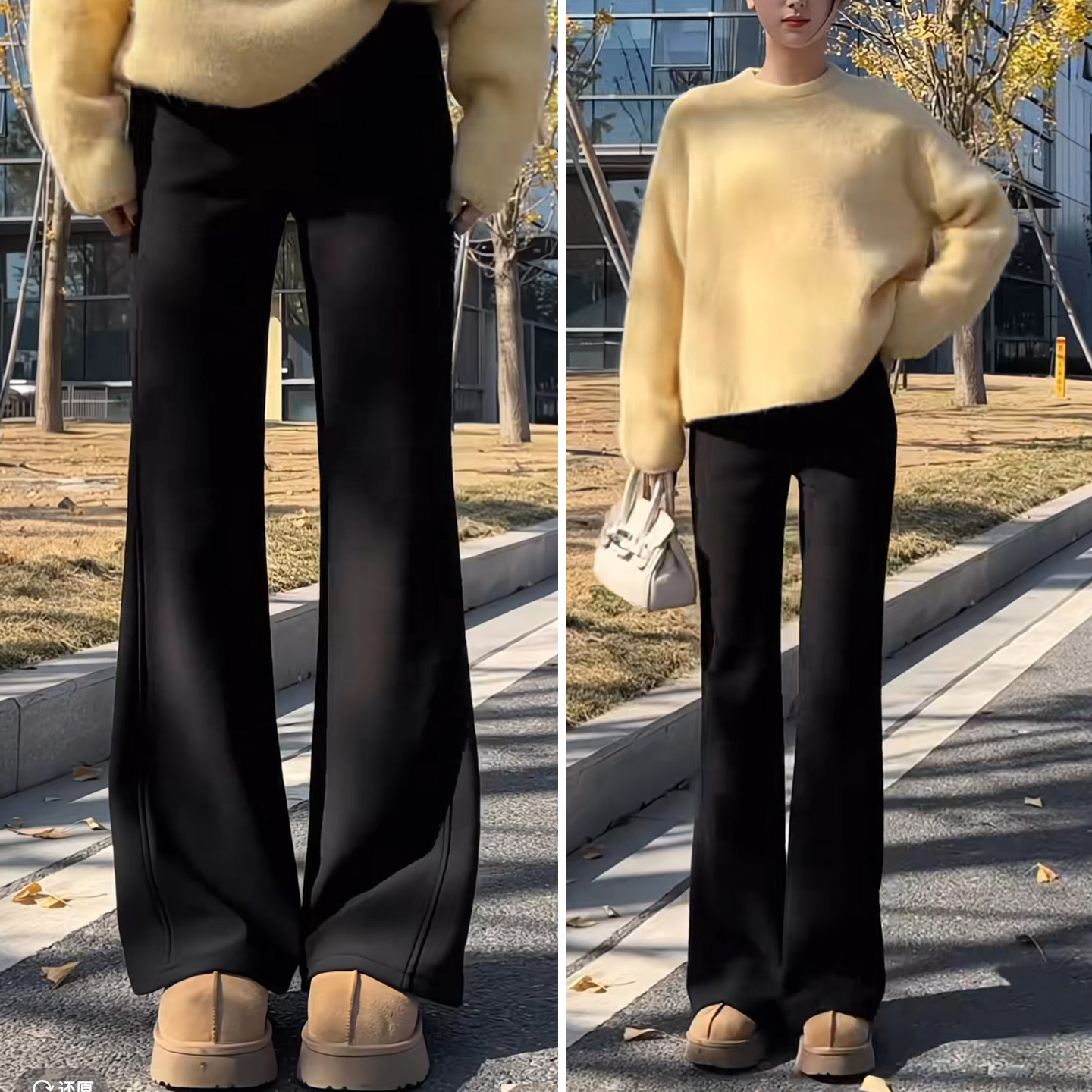 黑色超模微喇裤女2025秋冬加绒保暧高腰显瘦休闲裤修身弹力喇叭裤