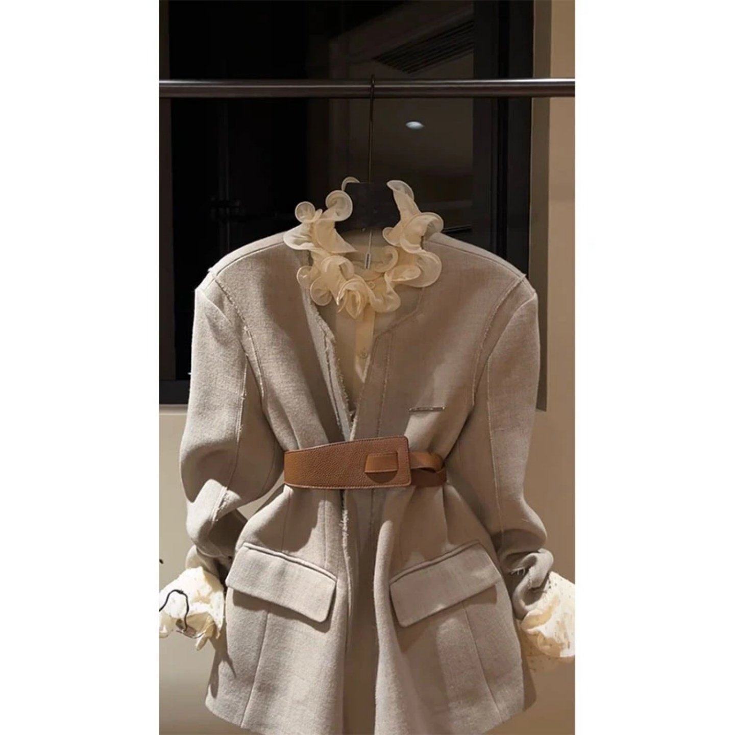 首页> 女装> 巨好看2026穿搭一整套高级感花边内搭上衣宽松西装外套两件套装