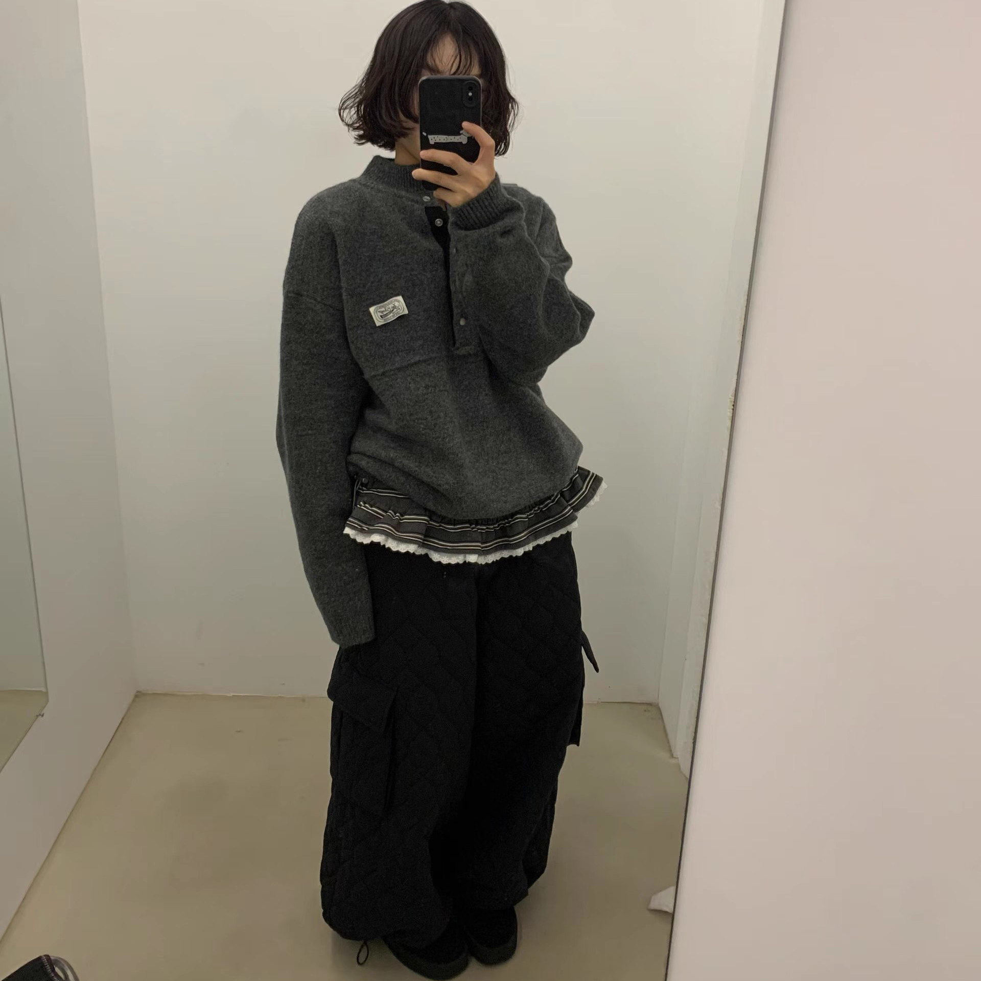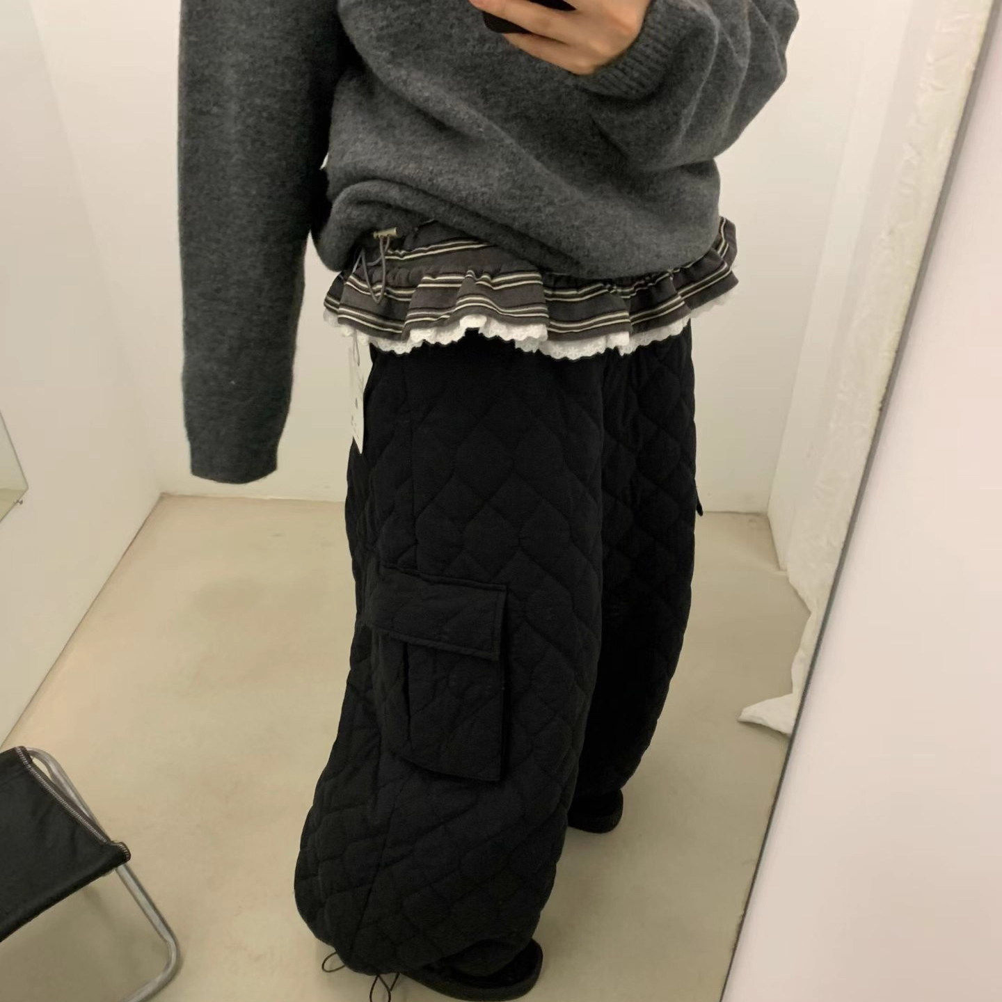 高端货~菱形格纹束脚工装棉裤松紧腰抽绳工装风保暖休闲长裤