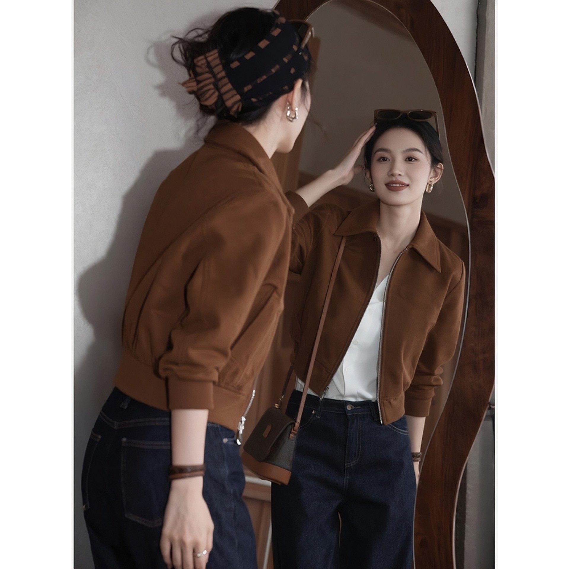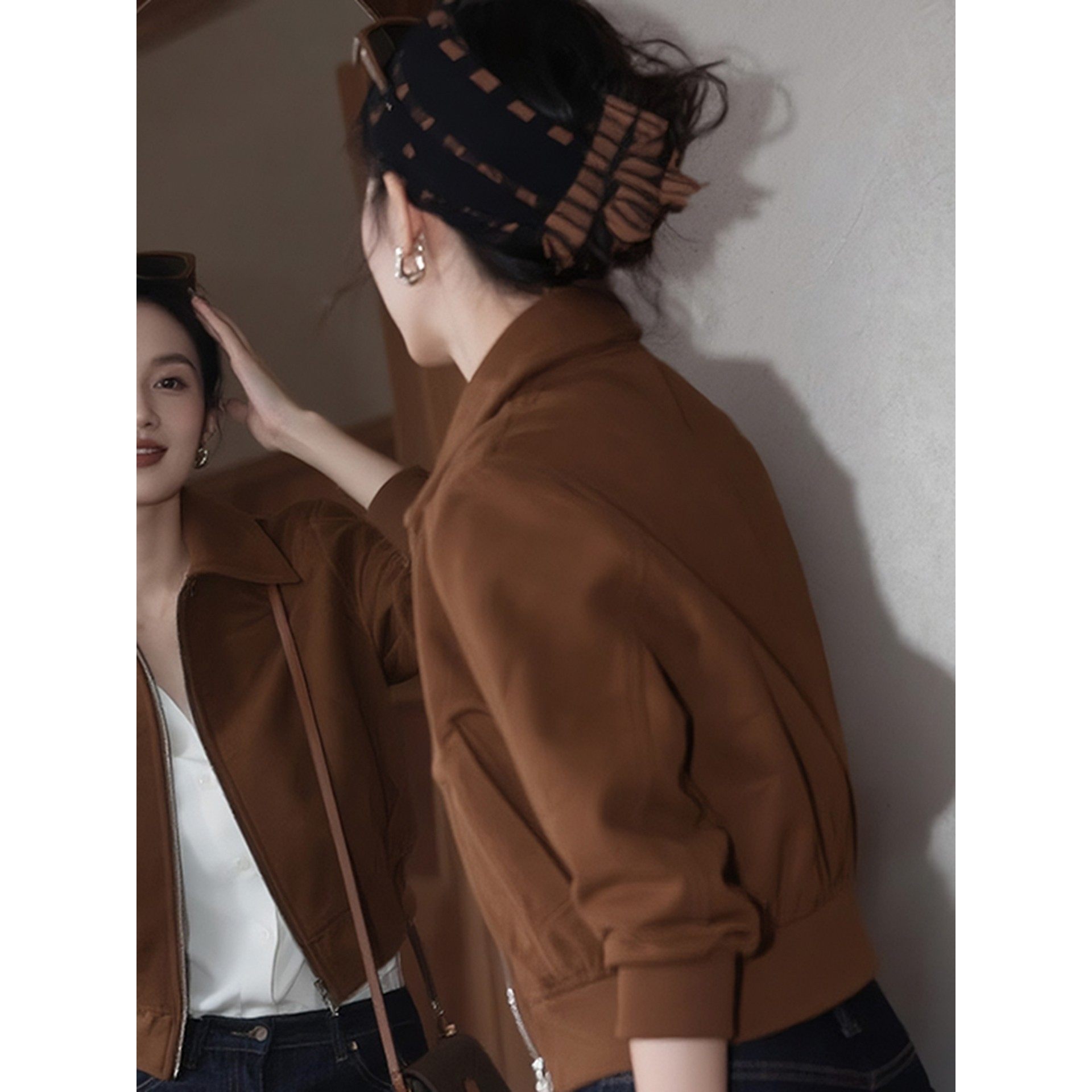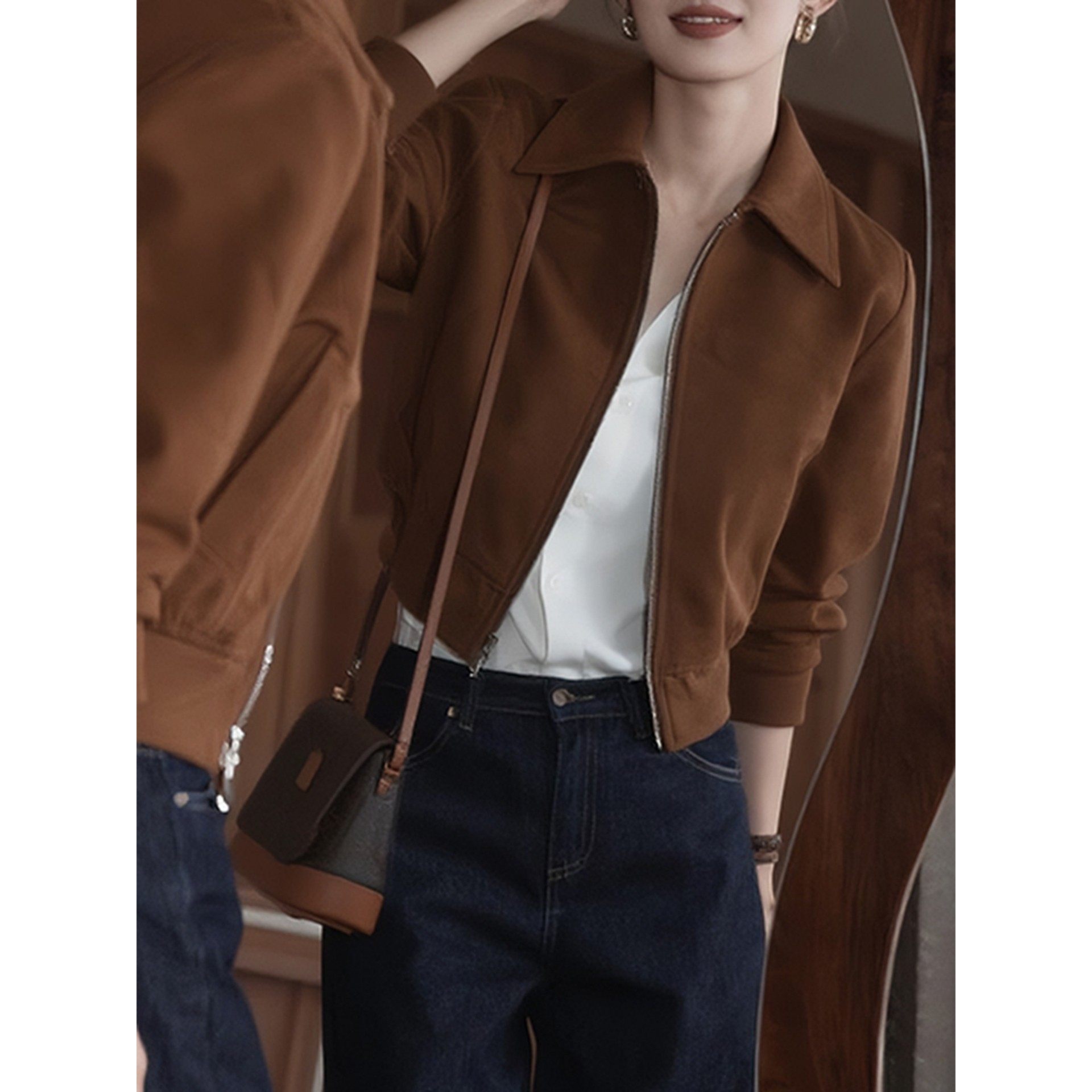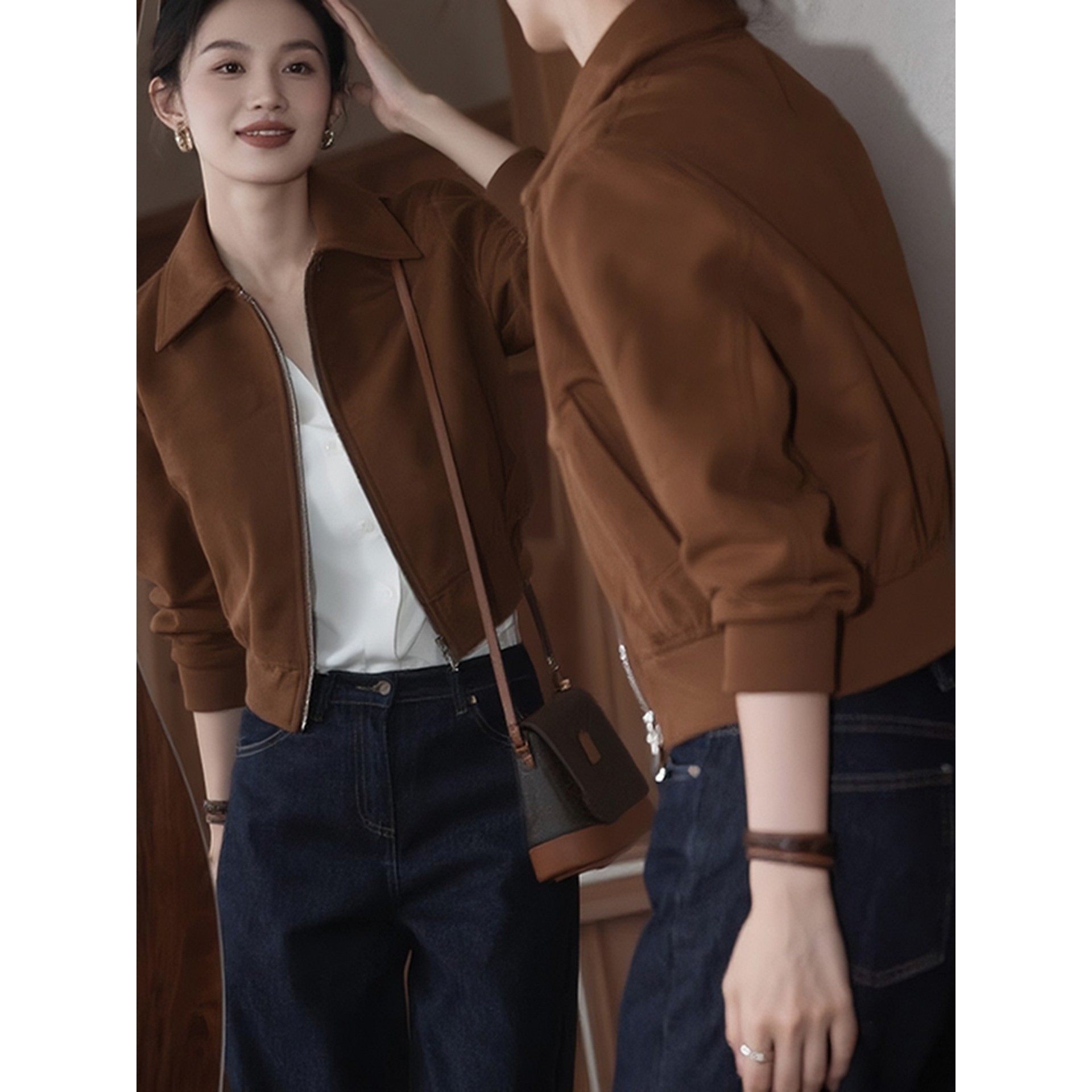 咖色短款立领外套女士春秋季欧货新款气质小个子休闲卫衣夹克上衣
