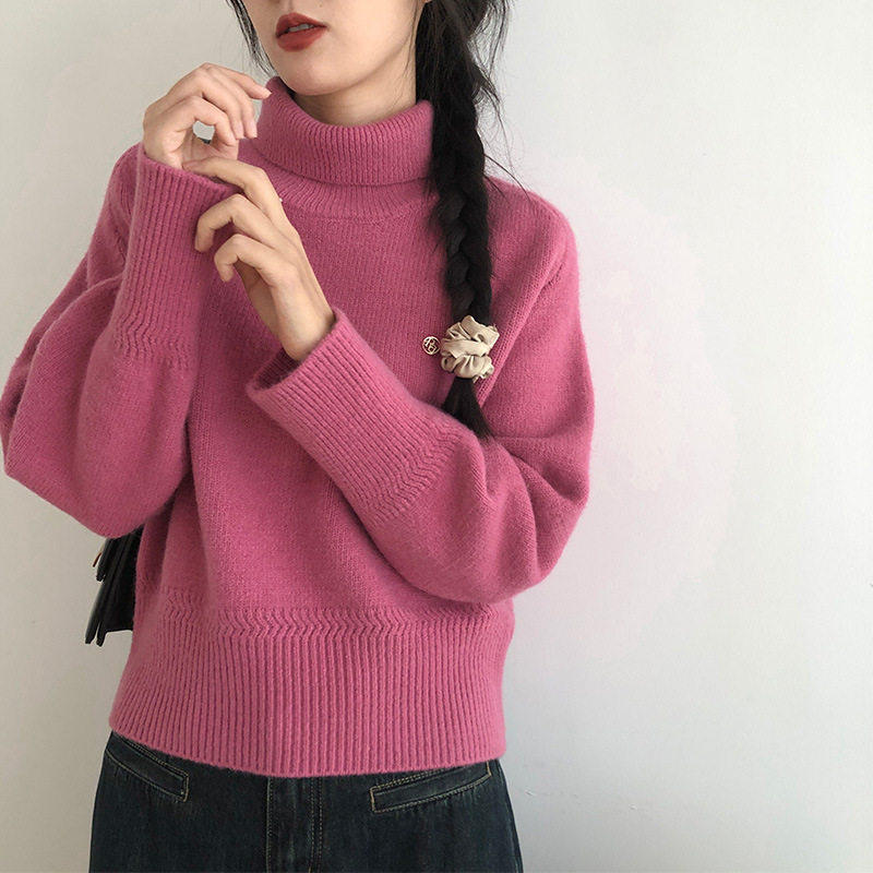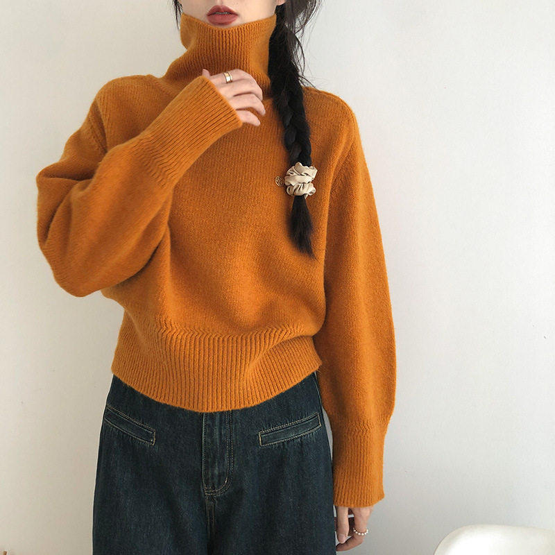 好毛衫女高领加厚保暖内搭毛衣针织衫韩系设计感短款长袖打底上衣