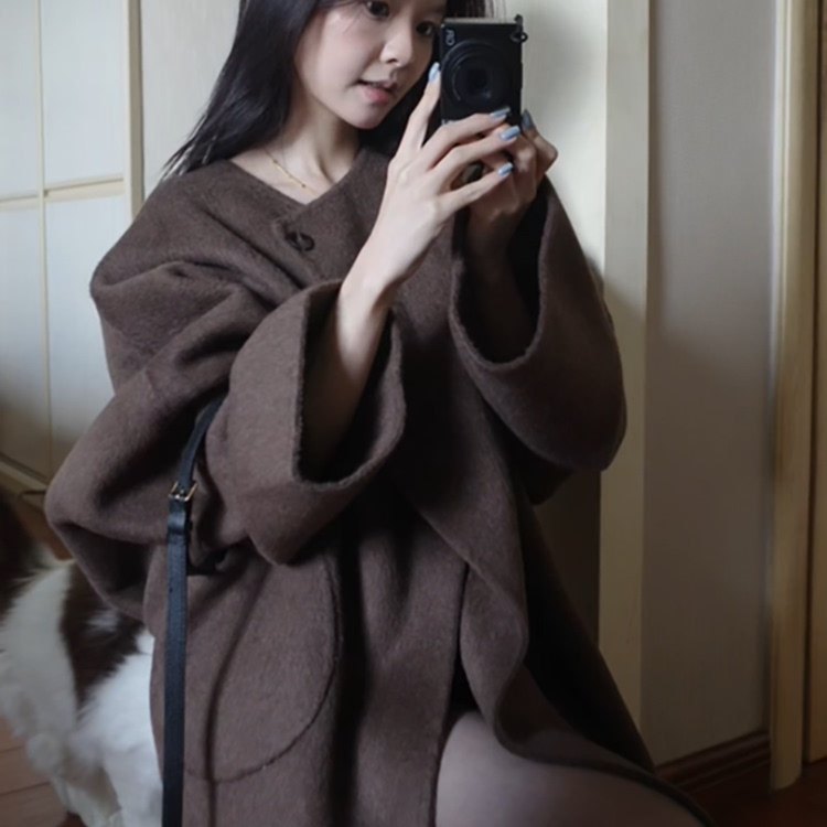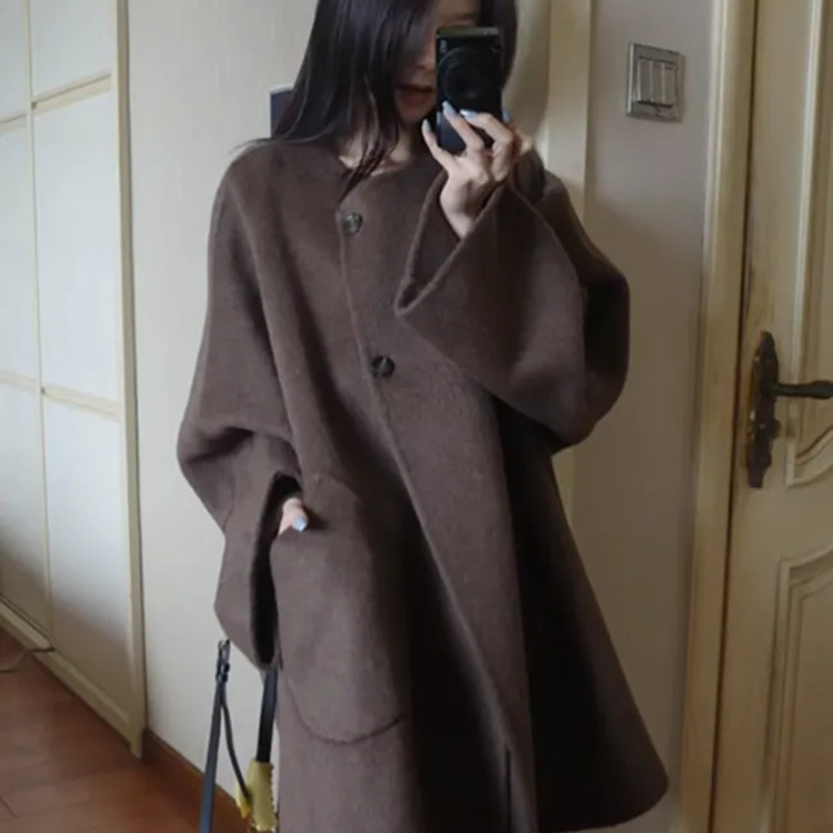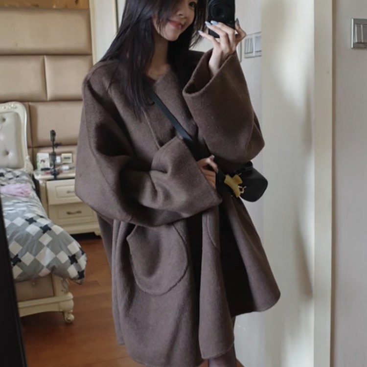 韩系老钱风复古中长款毛呢外套女秋冬2025新款高级感宽松呢子大衣