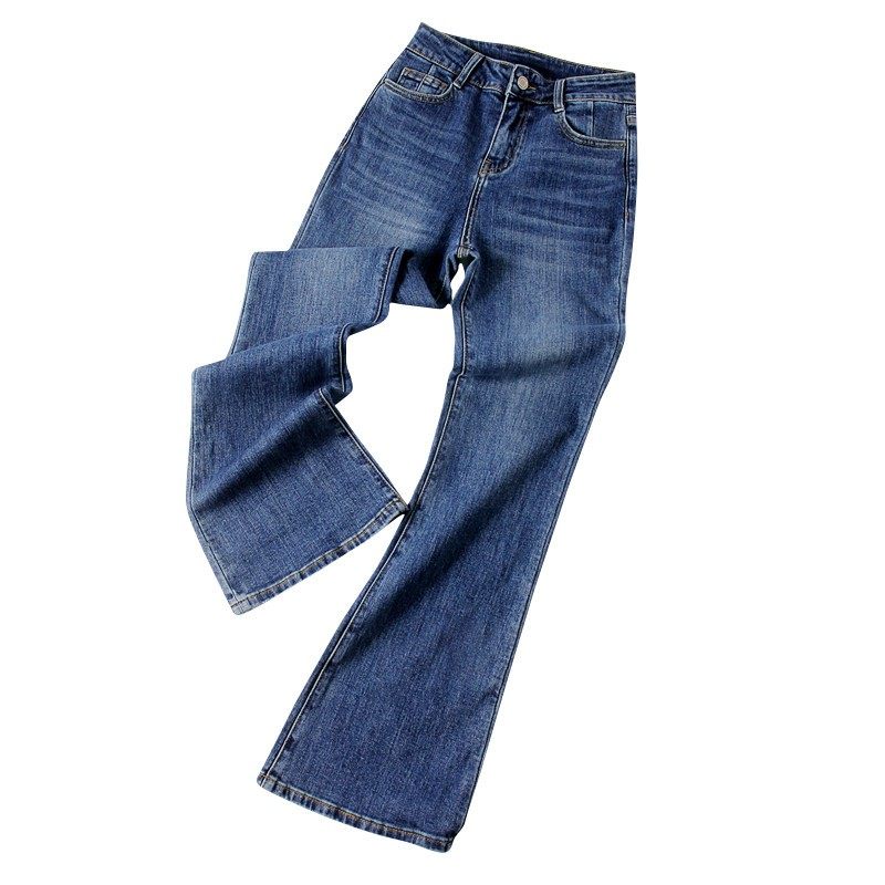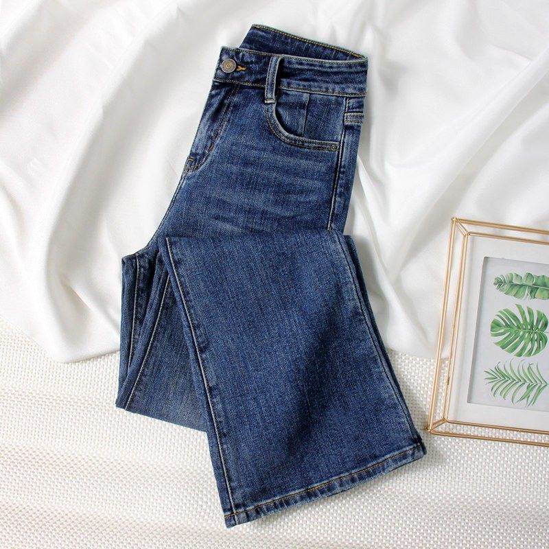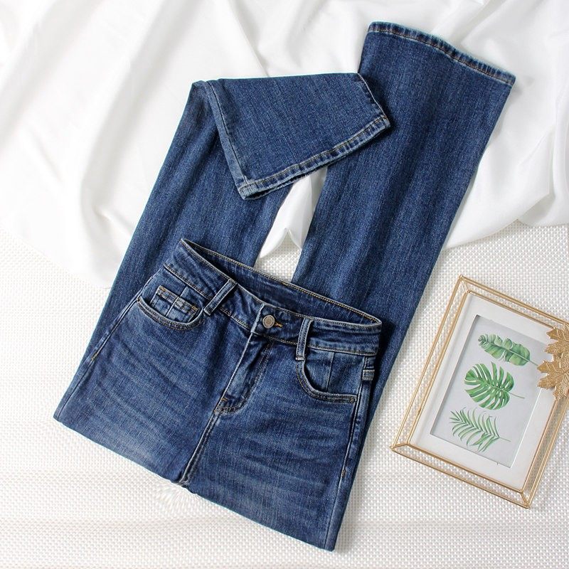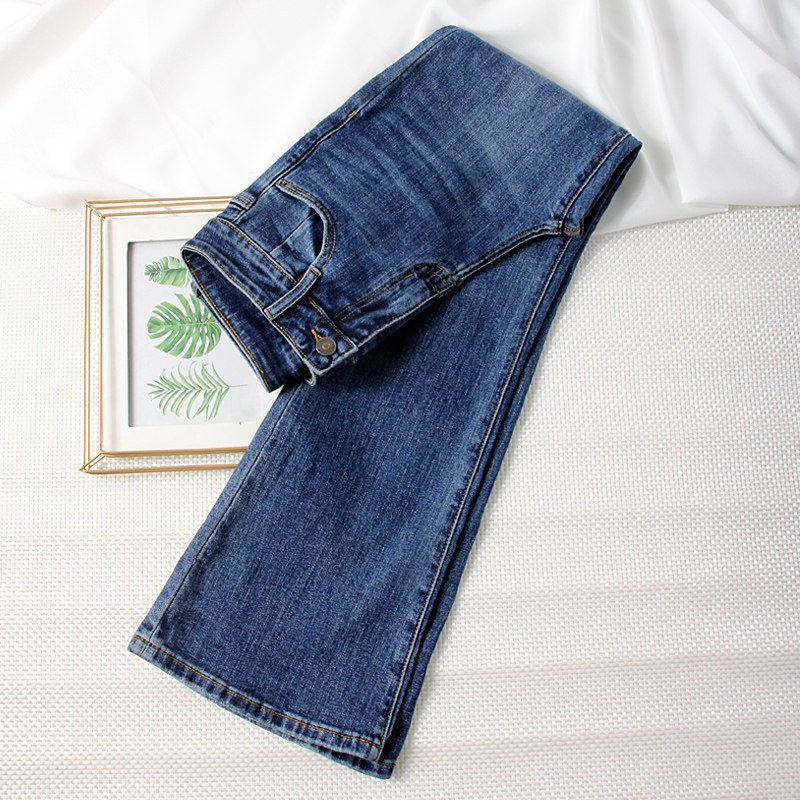 深蓝色微喇牛仔裤女2025年春秋新款修身直筒高腰显瘦九分喇叭裤潮