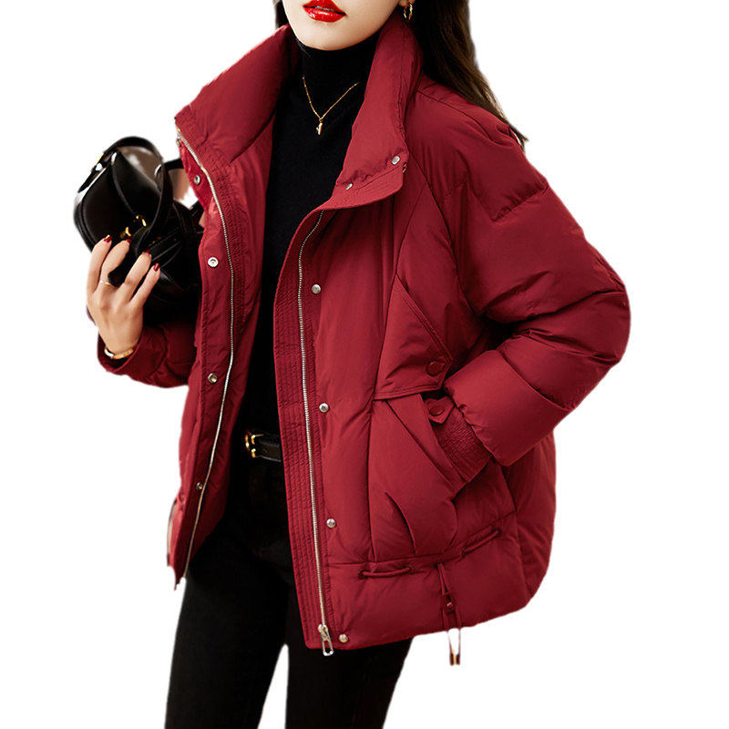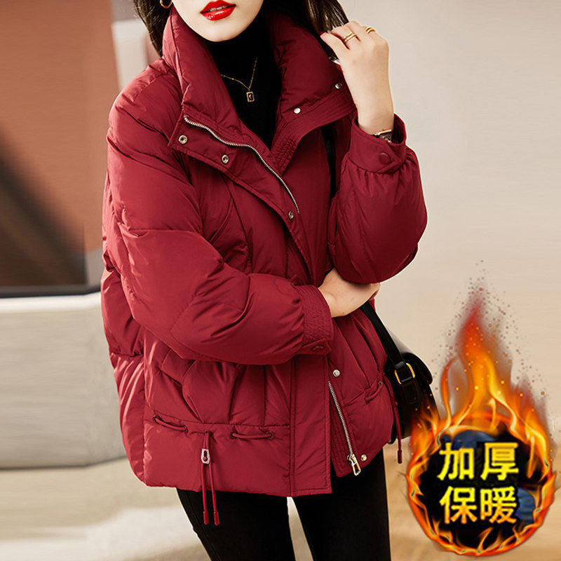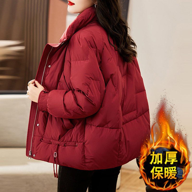 今年流行爆款红色羽绒棉服女款2025新款冬季加厚设计感棉衣外套女