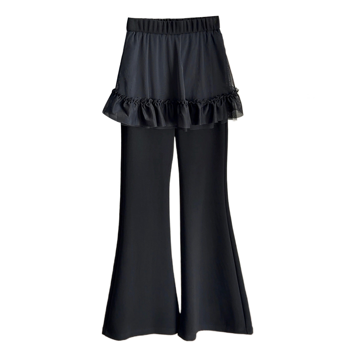 首页> 女装> 假两件网纱屁帘拼接微喇西装裤女春季新款弹力百搭高腰显瘦休闲裤