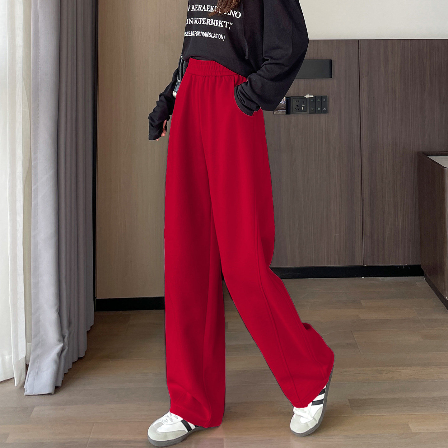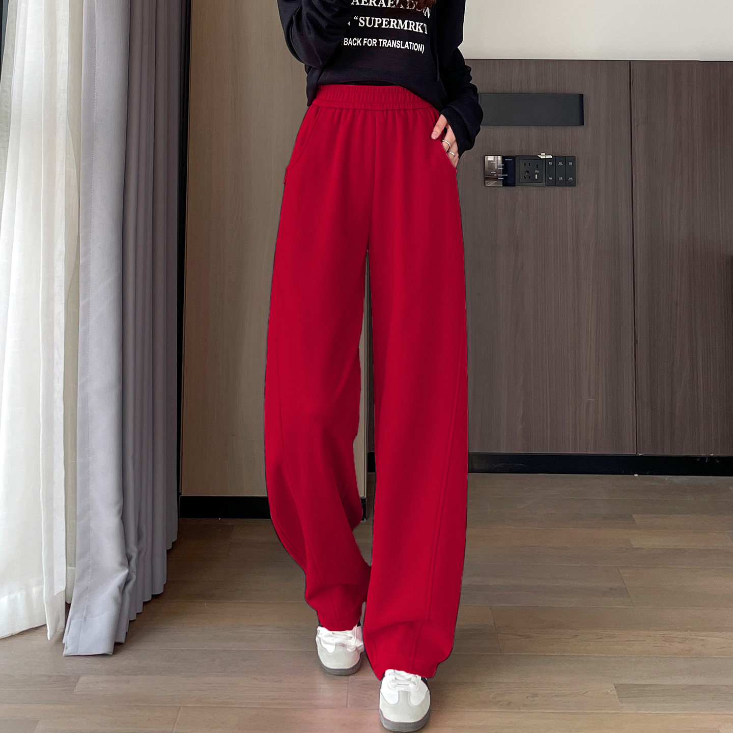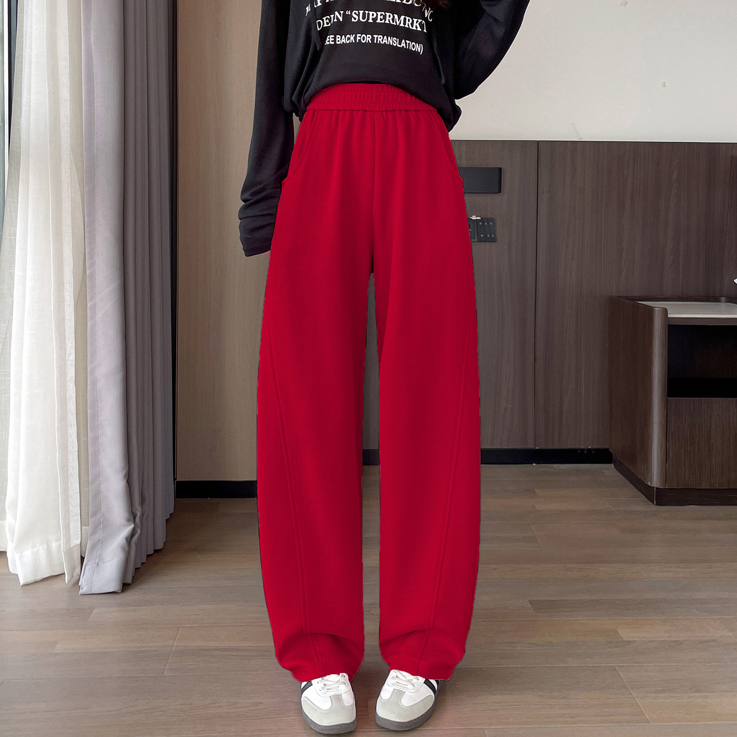 首页> 女装> 中国红高腰弯刀裤女2026春季新款宽松显瘦时尚休闲运动阔腿香蕉裤