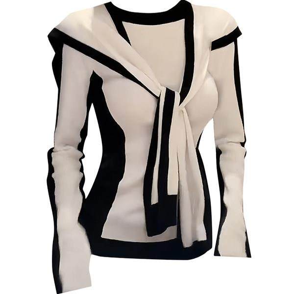 新品香港秋季学院风撞色拼接长袖针织衫女复古显瘦上衣披肩两件套